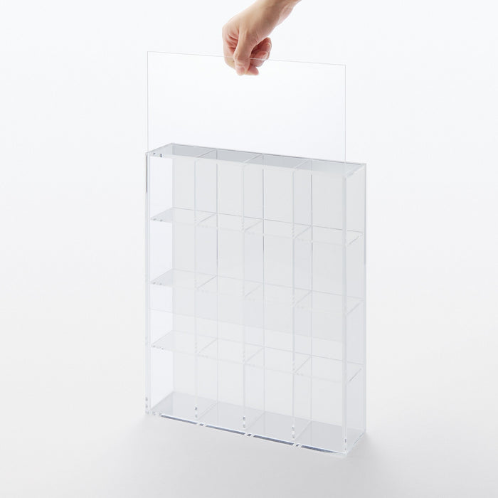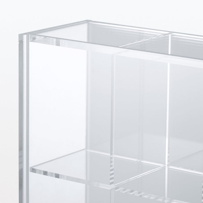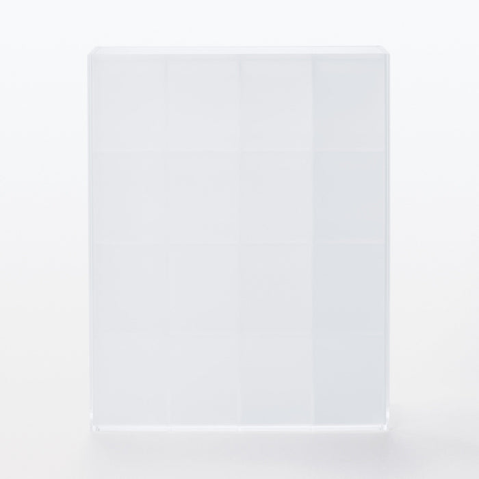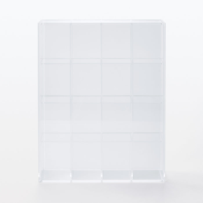 This acrylic box is perfect for storing and showcasing your collection of figurines and trinkets, with a 4 x 4 grid that allows for ample display space. The clear front panel and translucent back panel are removable.