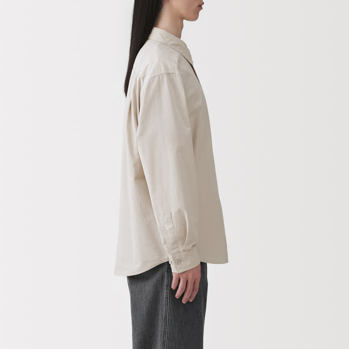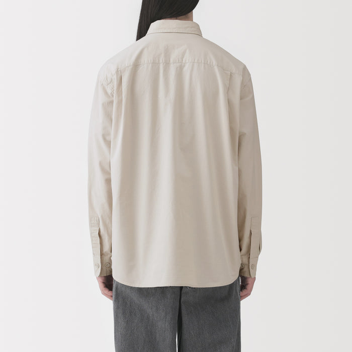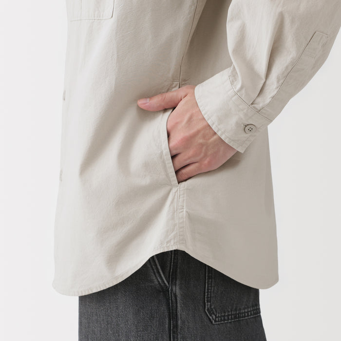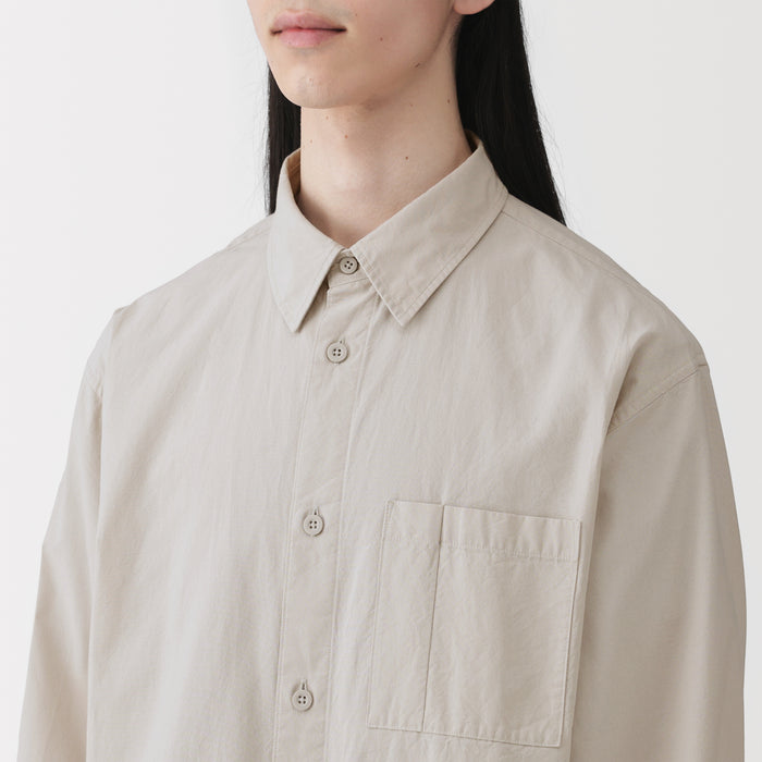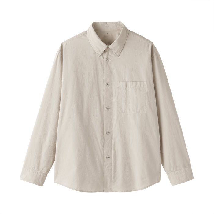 Made with tightly twisted cotton yarn, this durable overshirt has just the right amount of firmness and comfort. The lightweight pre-washed material can be worn as both a shirt and a jacket. It is a basic design that goes well with knitwear, and its generous silhouette makes it easy to layer.