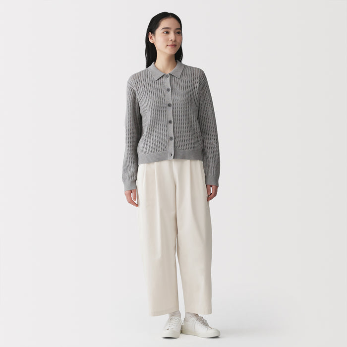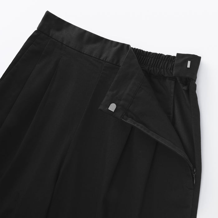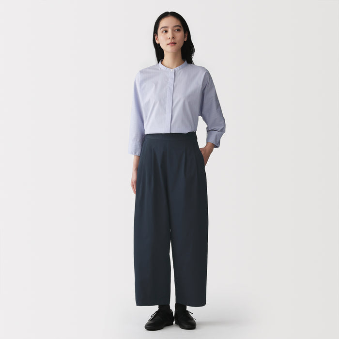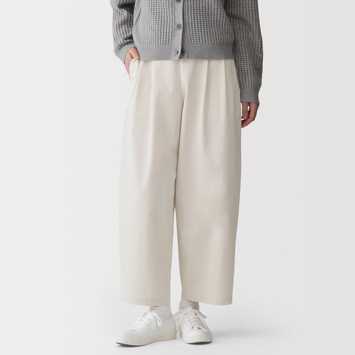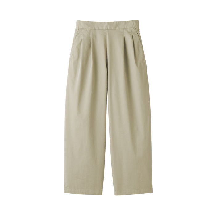 These women's pants have a wide tapered cut and feature a sleek side-open design for a clean waistband. Made from a firm organic cotton blend twill for structure.