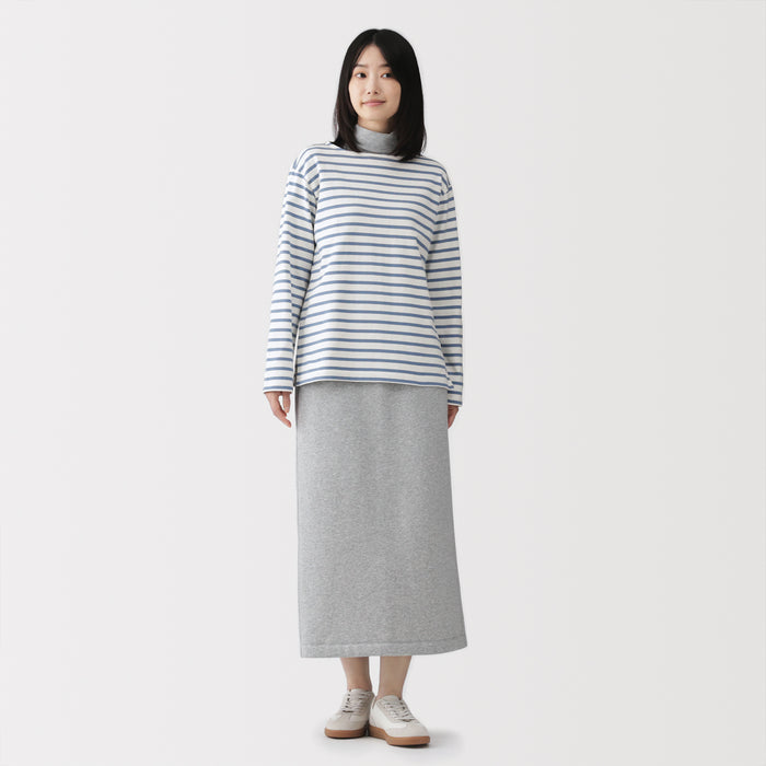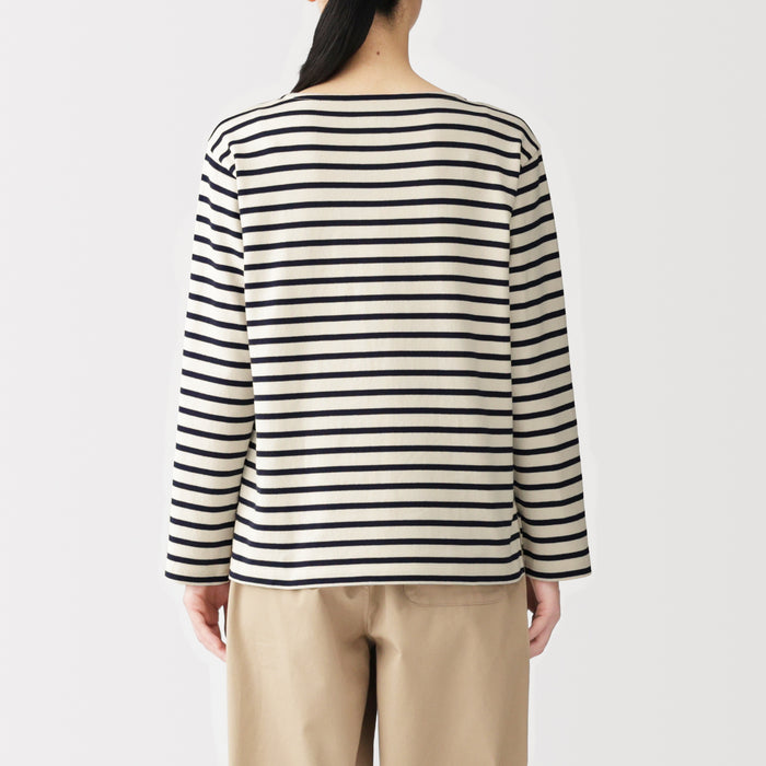 This women's long-sleeved t-shirt features a thick, densely knitted organic cotton fabric that provides durability and comfort. Its sturdy construction minimizes pilling.
