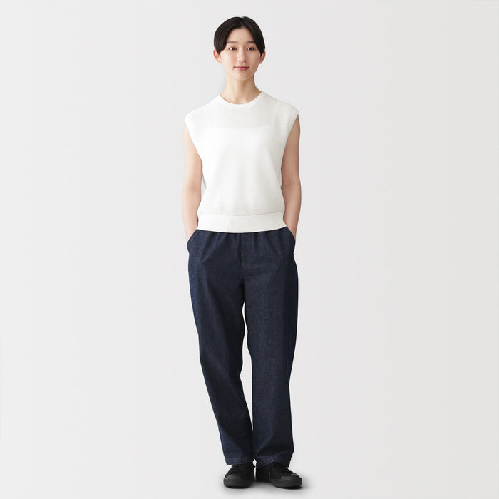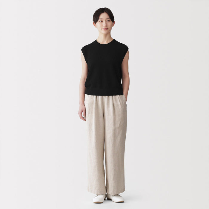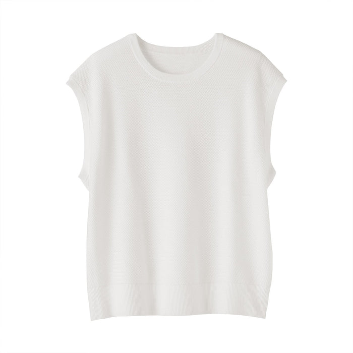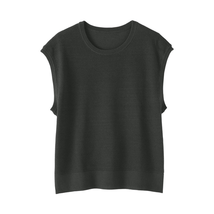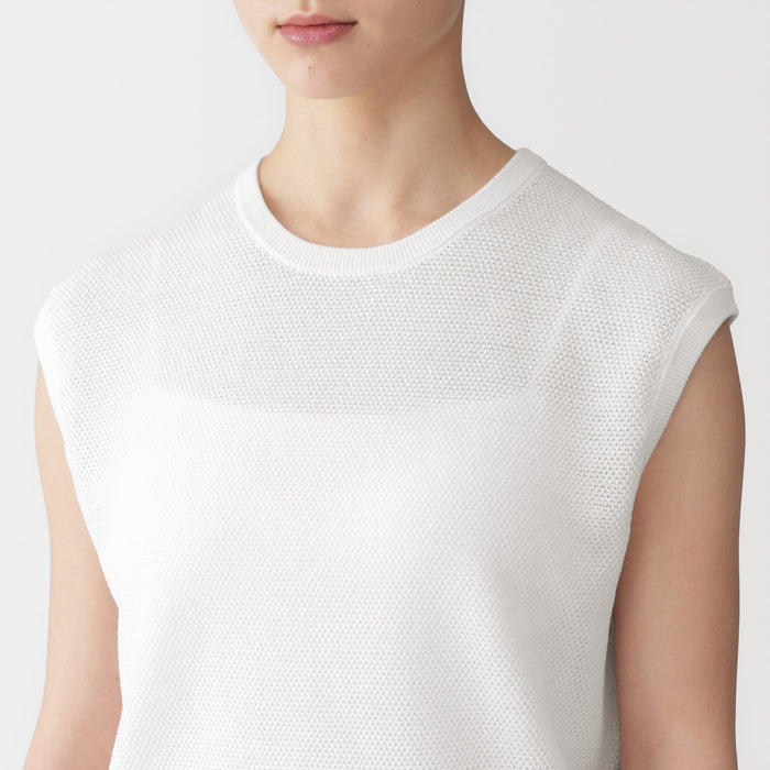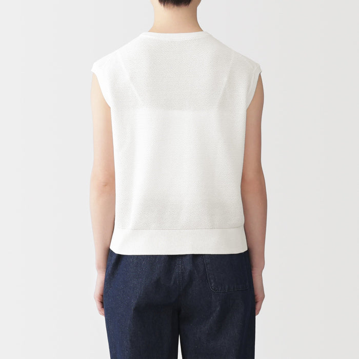 A women's sleeveless sweater that's perfect for warm days. Made from high-twist organic cotton yarn with openwork knitting for an airy, lightweight texture to keep you cool.