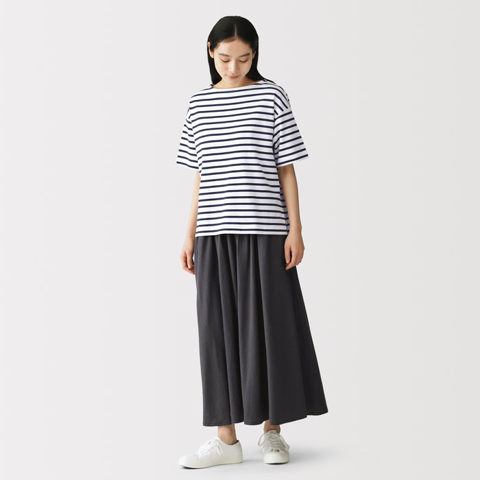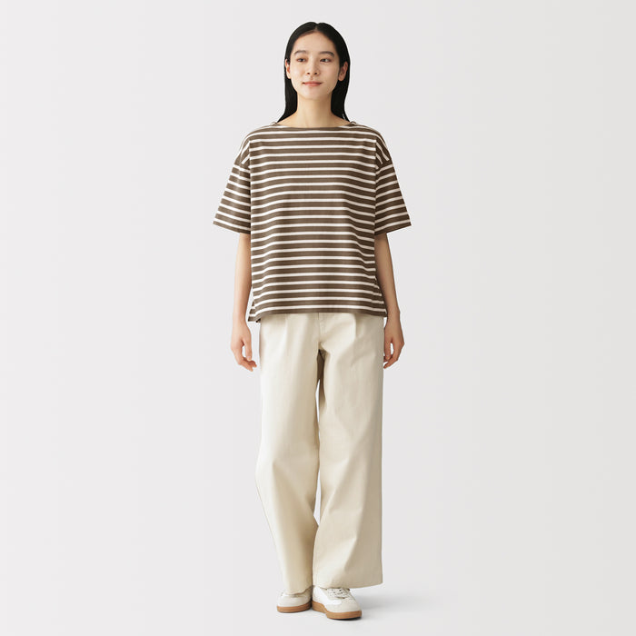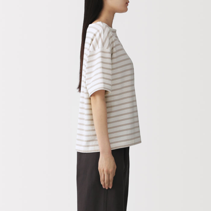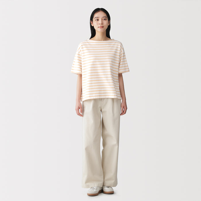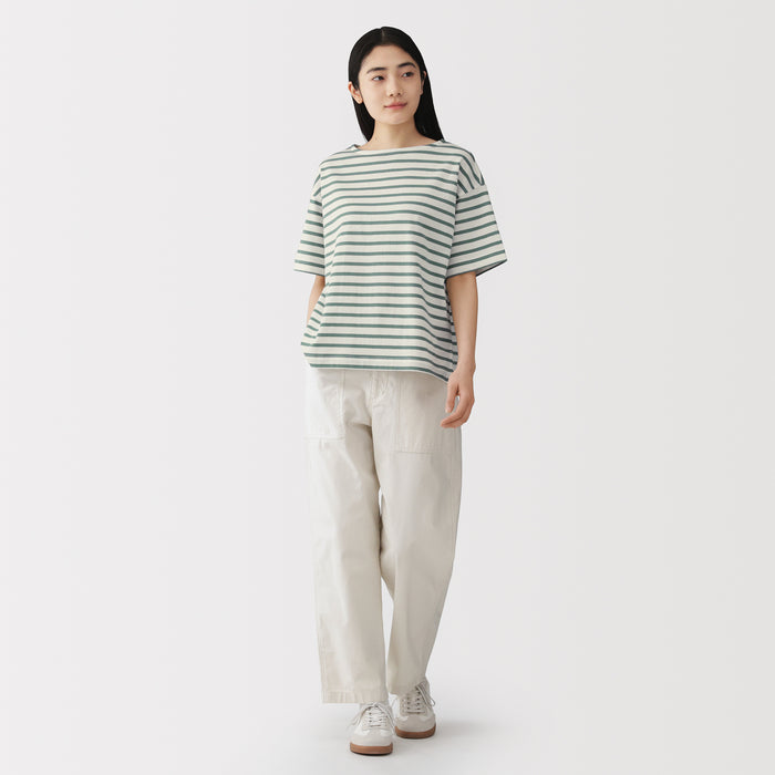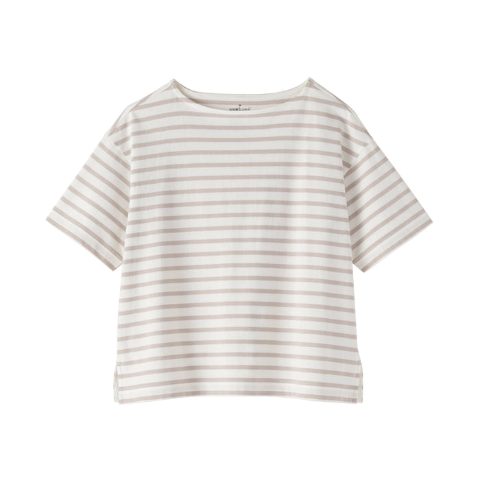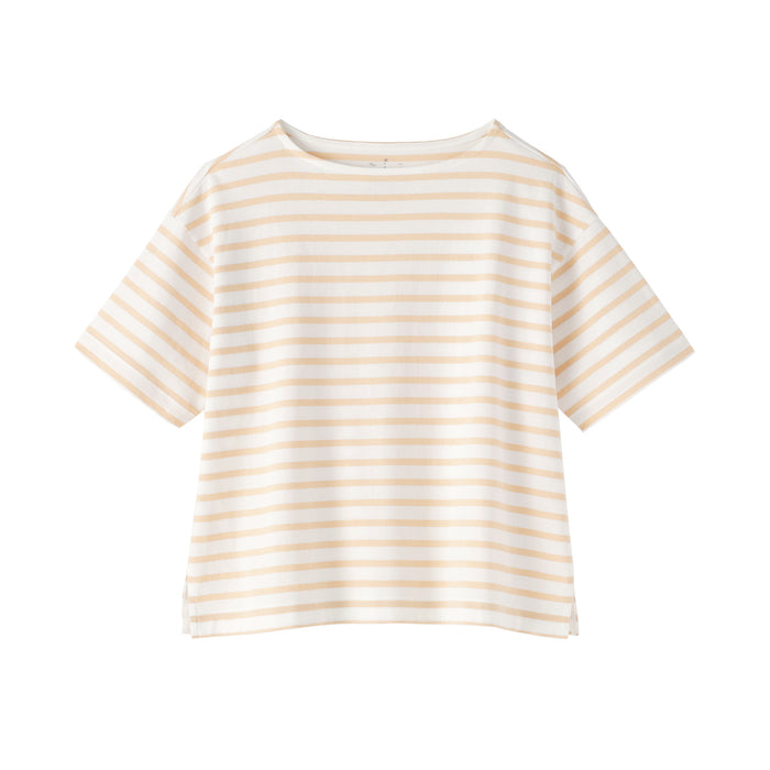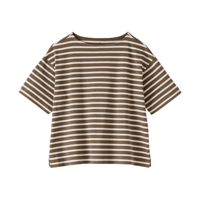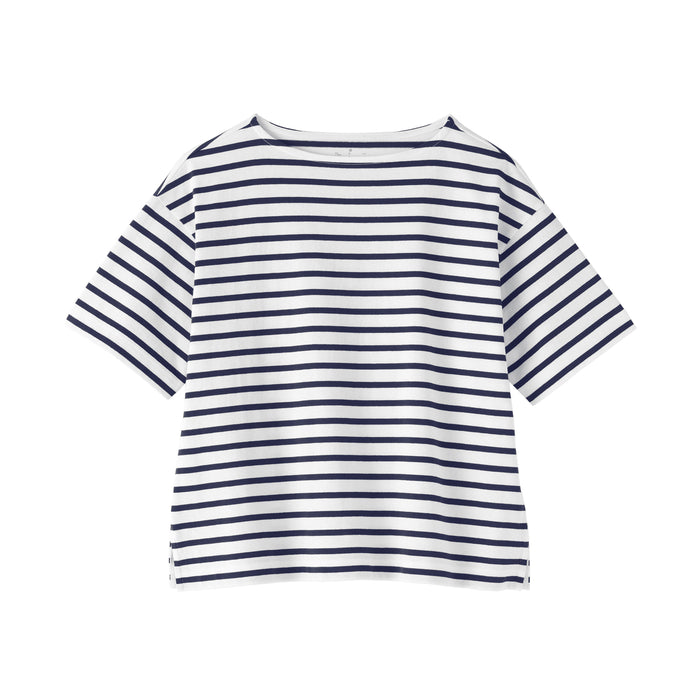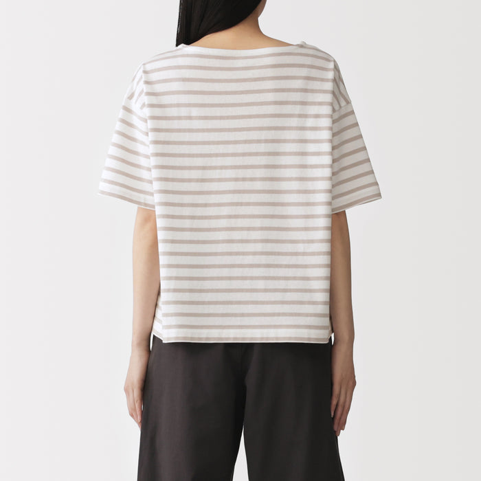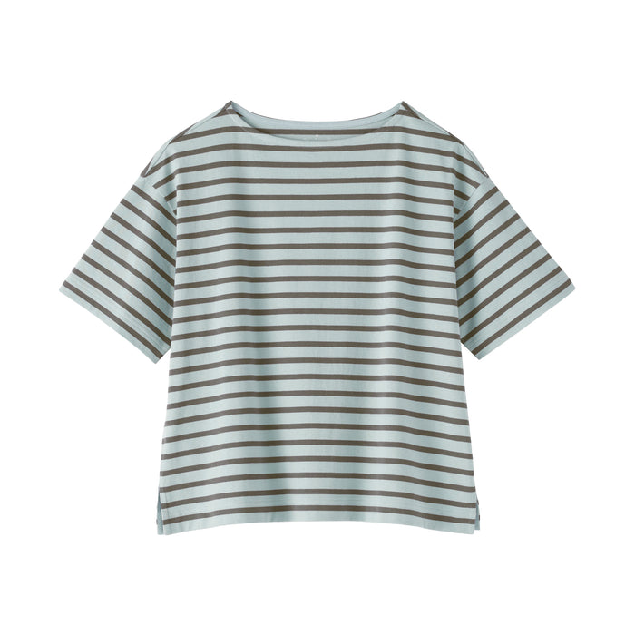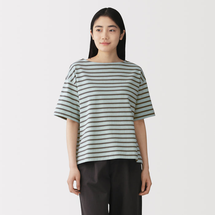 This women's boatneck t-shirt is made with 2-ply knit organic cotton. The material is soft and moderately thick, perfect for everyday wear.