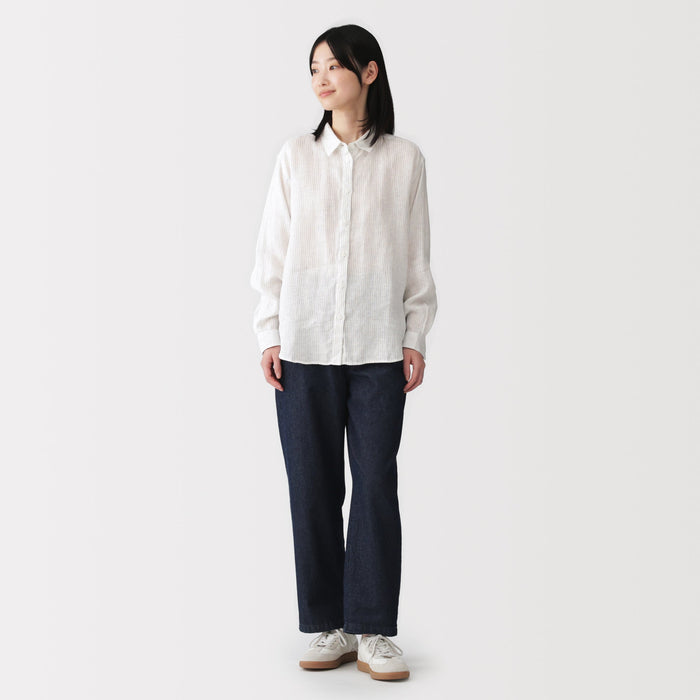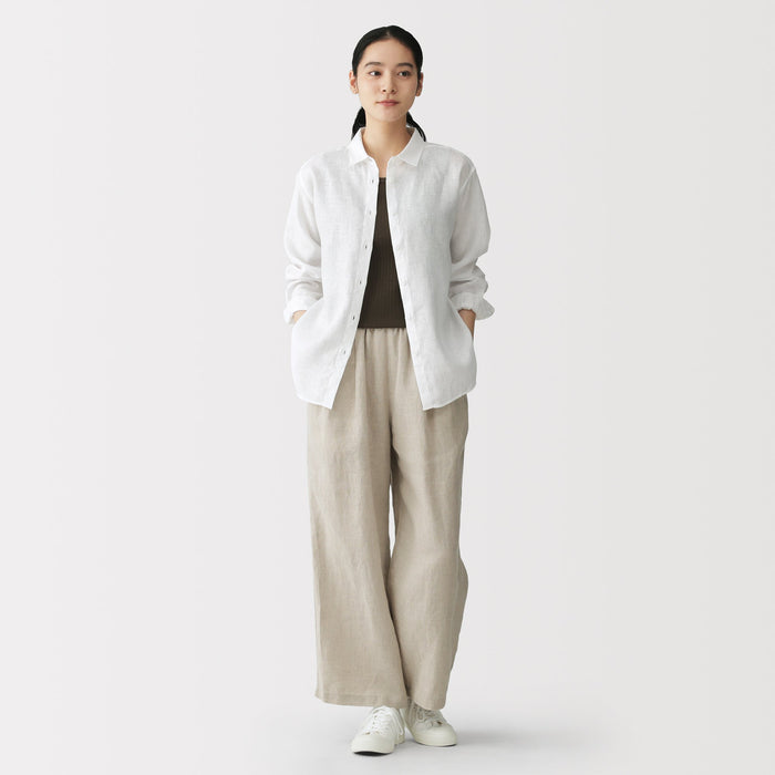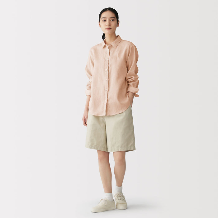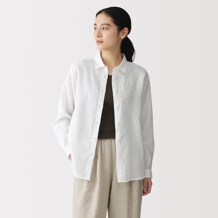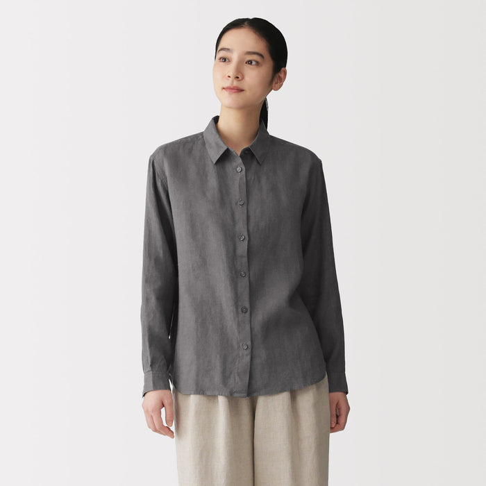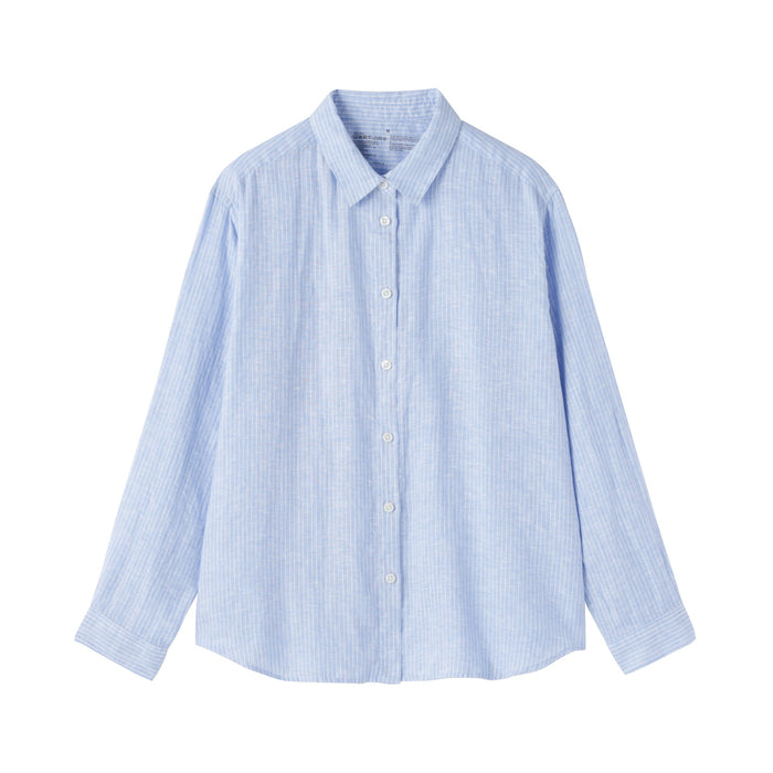 A classic women's collared long sleeve button-up shirt made with cool, pre-washed French linen that gets softer with each wear. Breathable and lightweight, you can wear it on its own, or layered over a t-shirt.