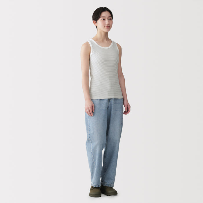 This women's tank top is made from a thick ribbed material using regenerated cellulose fibers, soft to the touch and comfortable to wear. The blend of lyocell and organic cotton is thin and supple, with just the right amount of elasticity. Its classic cut makes this shirt the perfect base layer for any summer outfit.