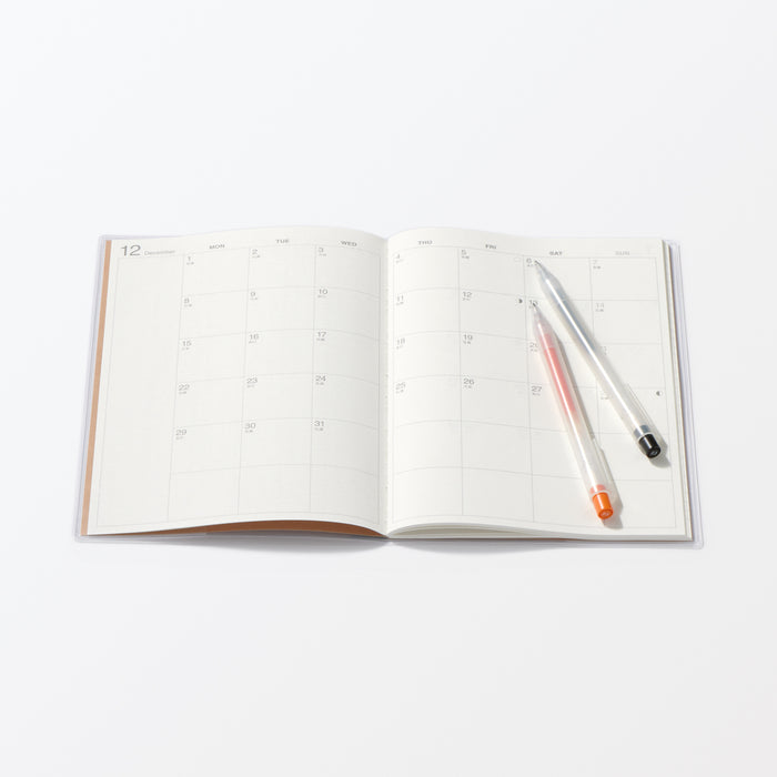 This monthly planner starts on Monday and includes 2-page monthly spreads with lined pages for notes. Comes with a vinyl cover to protect against light spills and debris.