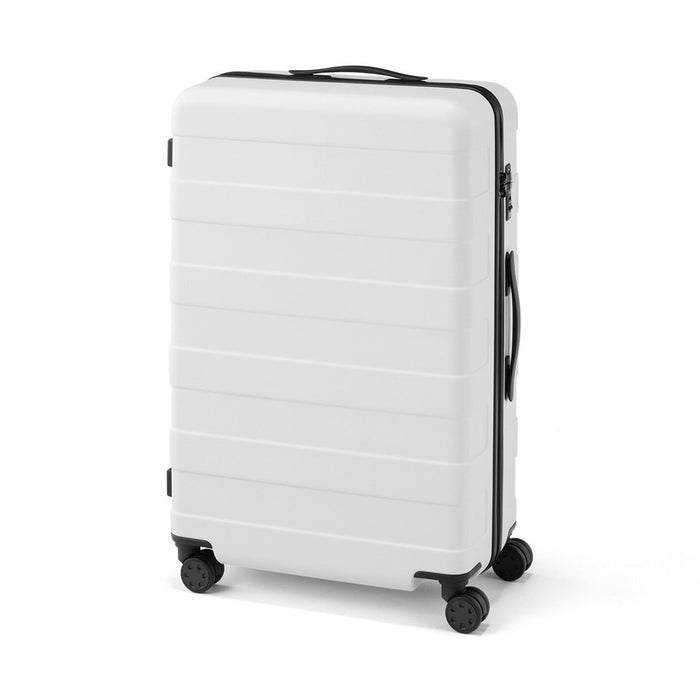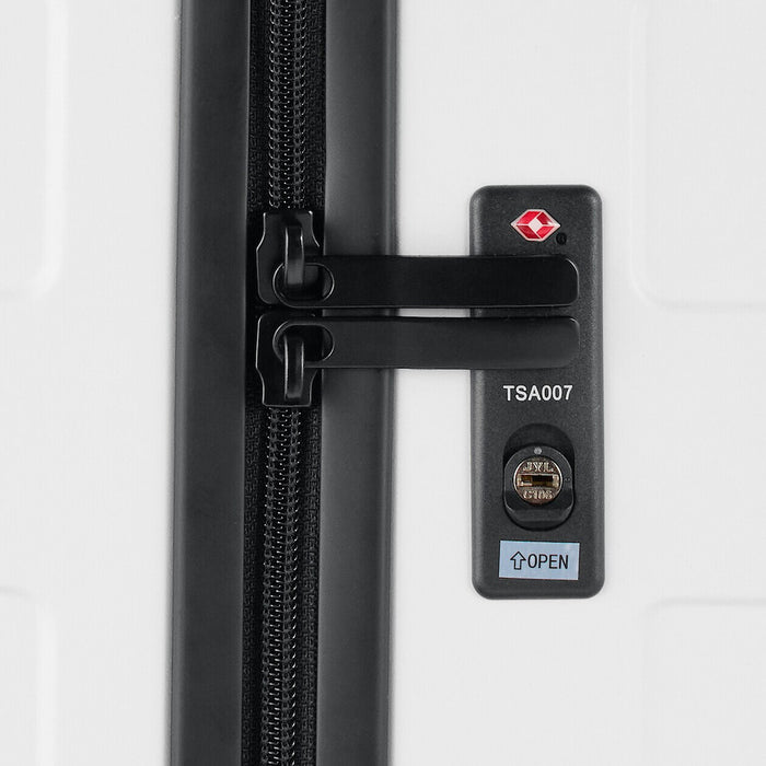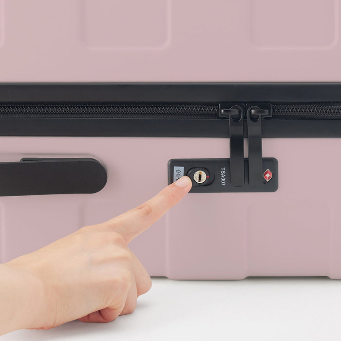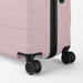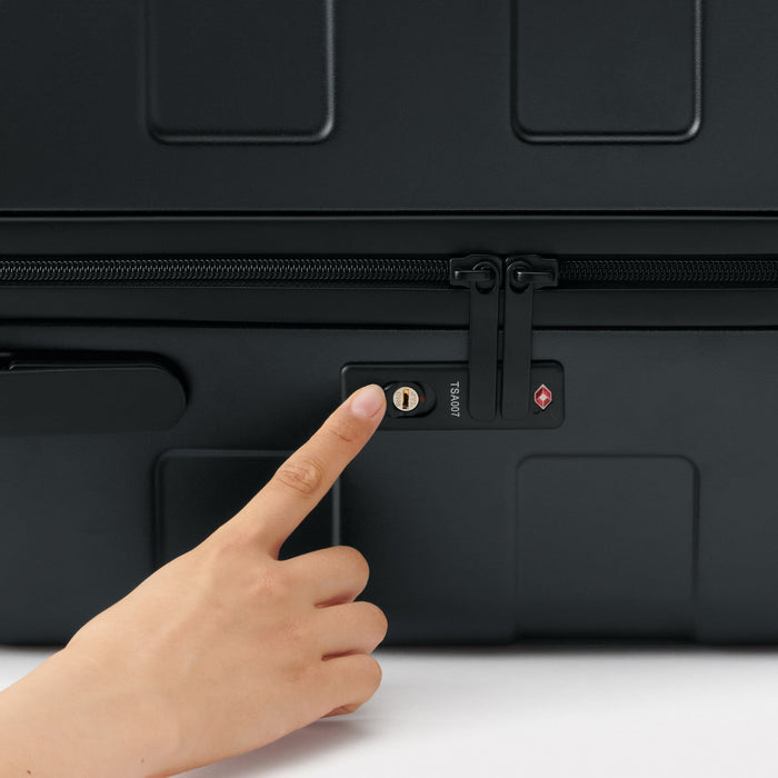 Featuring a wheel stopper button on the back that locks two of the wheels in place, preventing the luggage from rolling away on inclines or transit. The wheels swivel 360° so you can effortlessly switch from pushing or pulling this suitcase without any hassle. It adopts a twin-wheel caster which runs quietly and smoothly.
