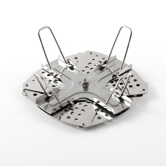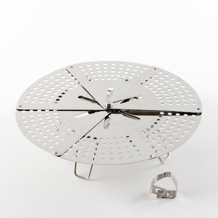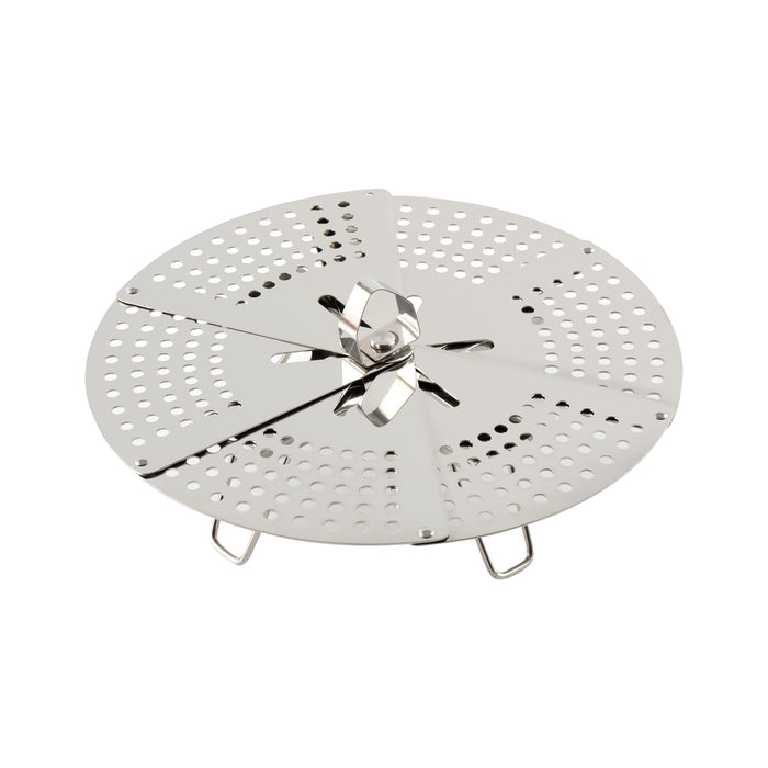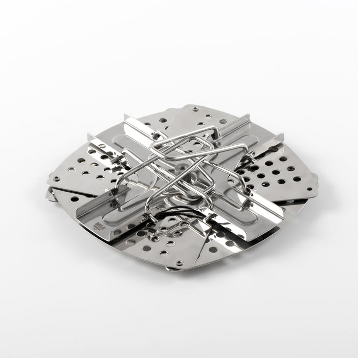 Get perfectly steamed results with this durable and compact stainless steel steamer rack. The foldable design tucks away neatly to save space when storing, making it a practical addition to any kitchen. It can be disassembled for easy and thorough cleaning.