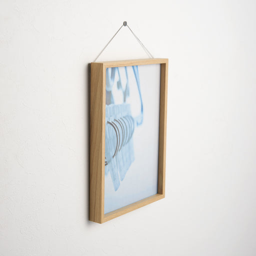 A photo frame made from sturdy wood material. Finished with oak to easily blend in with the interior colour.