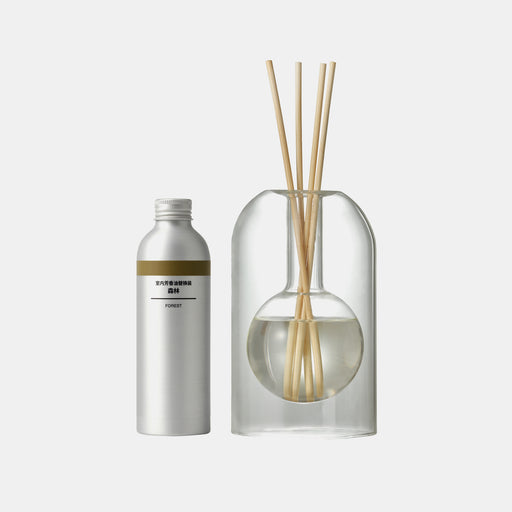 A fragrance diffuser made of clear glass. Add aromatic oils and reeds, and the remaining amount of essential oil is easily visible. After use, wash...