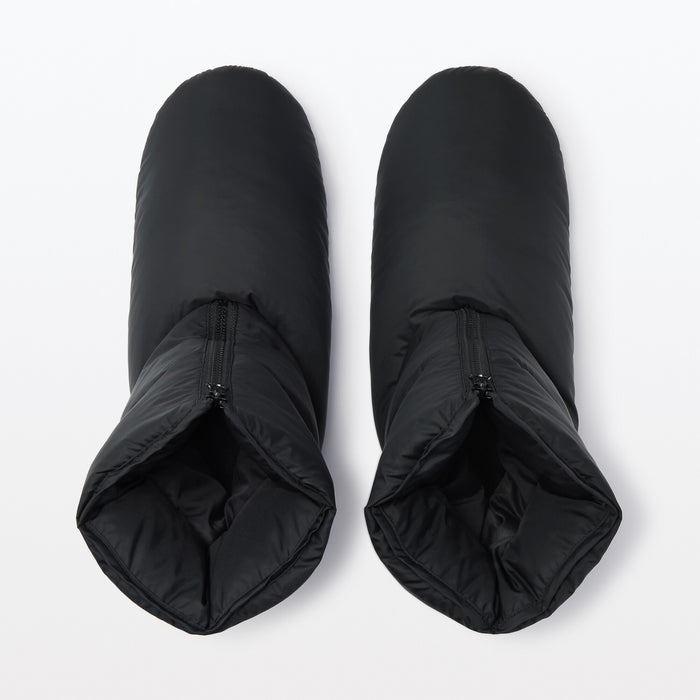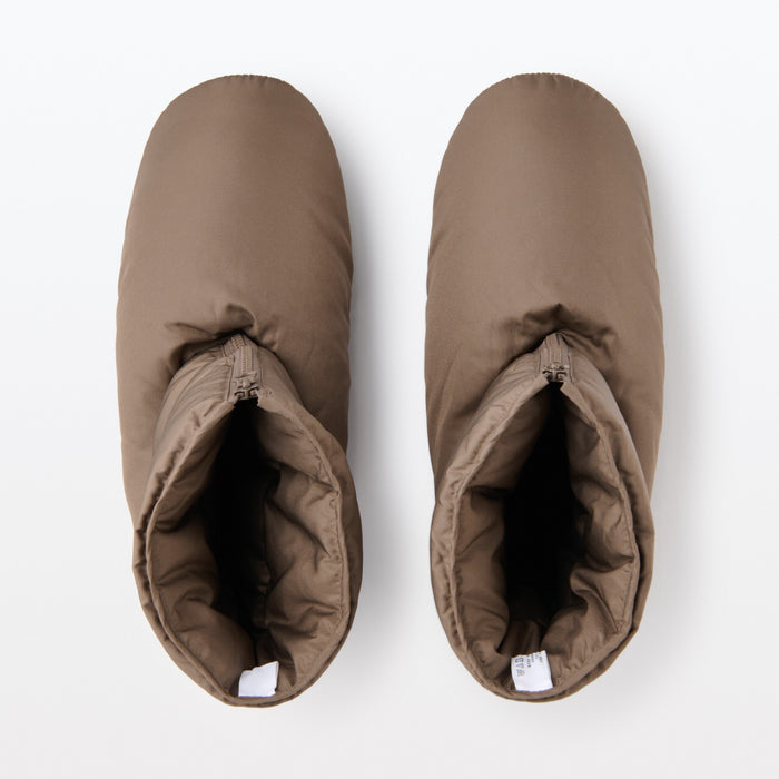 Comfortable room boots made with down padding, keeping you warm in cold weather right up to your ankles. The convenient front zipper allows to you slip these on and off quickly.