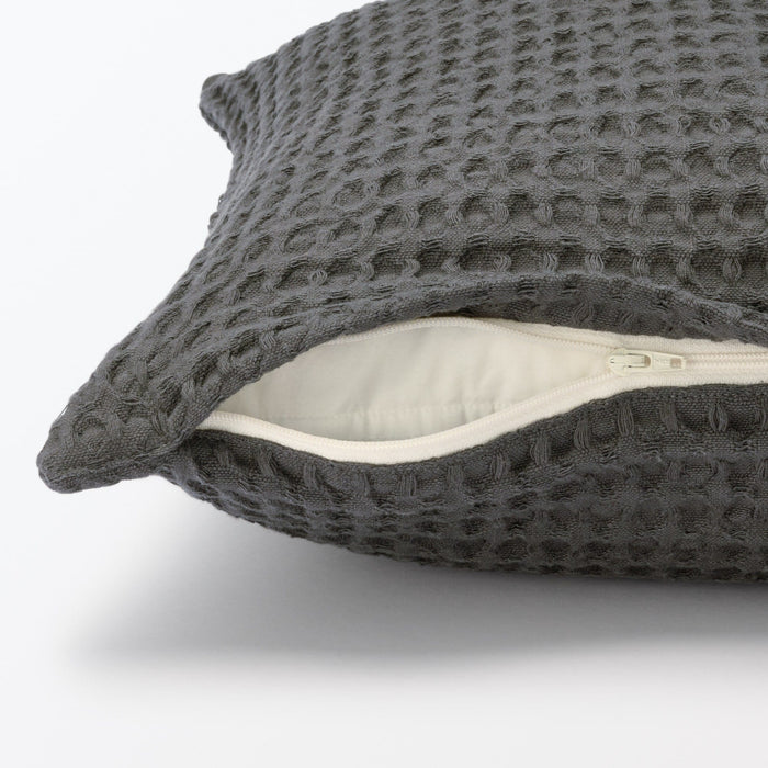 This cushion cover is pre-washed to enhance the cotton’s natural softness and texture. Its waffle knit design feels gentle and cozy against the skin.