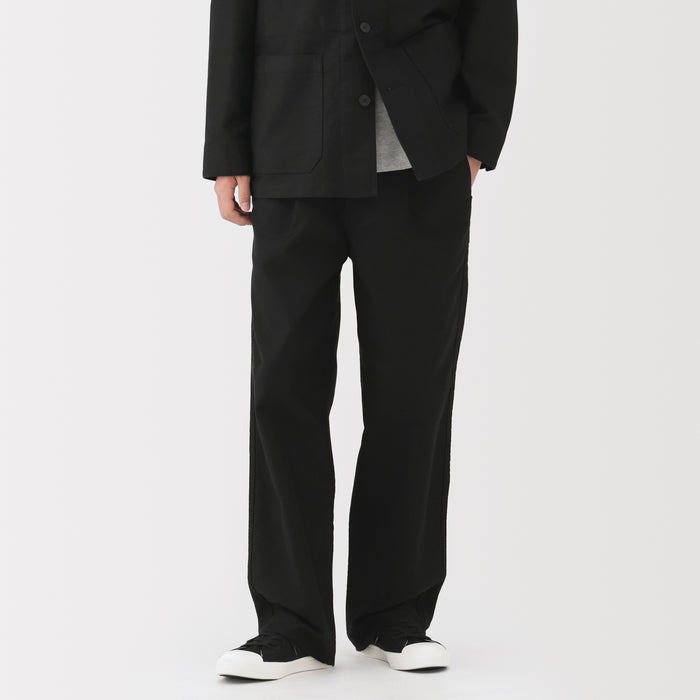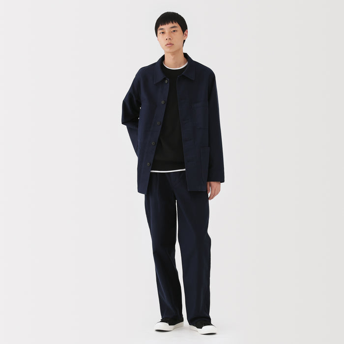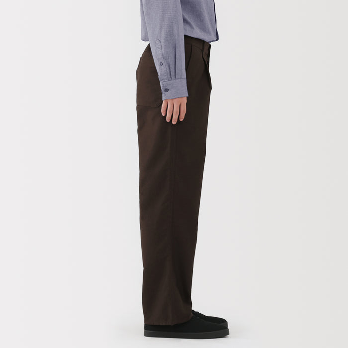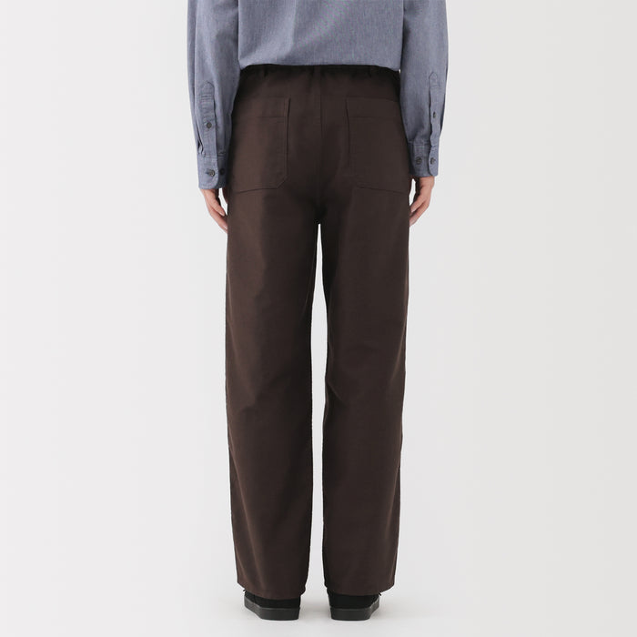 Men's work trousers designed with a slightly wide, straight silhouette that gives you room to move comfortably all day. The soft, suede-like texture of moleskin brings a refined look to any outfit while also keeping you warm. The legs are not too wide nor too slim, making it easy to pair with any top.