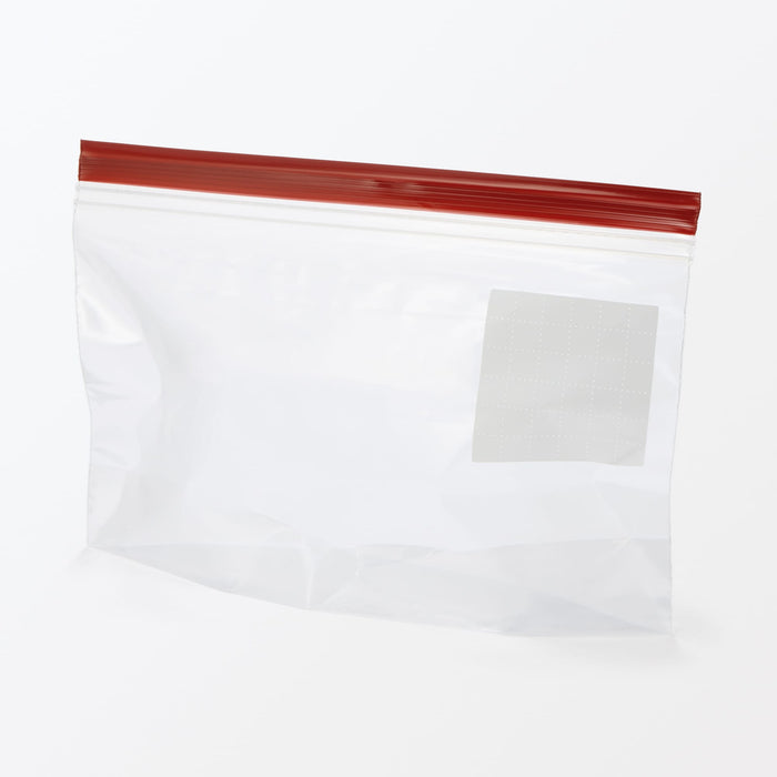 Its bottom gusset design allows the bag to stand upright for storing liquid-based foods securely. The double zipper ensures freshness with an air tight seal that prevents leakage. Each bag has a white square on the front for labelling the contents with high visibility. The packaging is designed with side and top openings for neat and convenient storage.