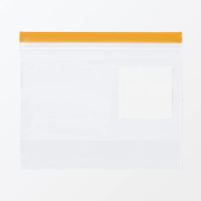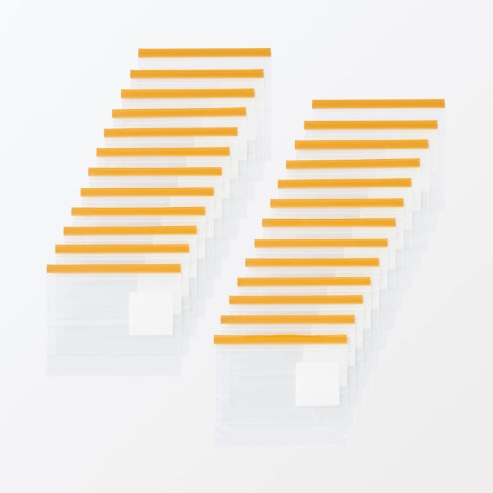 Its bottom gusset design allows the bag to stand upright for storing liquid-based foods securely. The double zipper ensures freshness with an air tight seal that prevents leakage. Each bag has a white square on the front for labelling the contents with high visibility. The packaging is designed with side and top openings for neat and convenient storage.