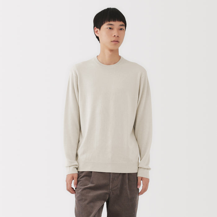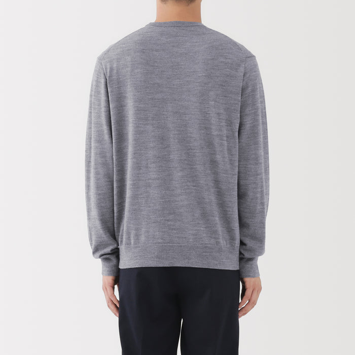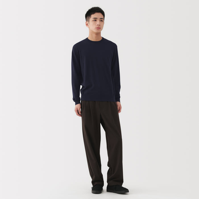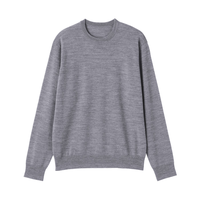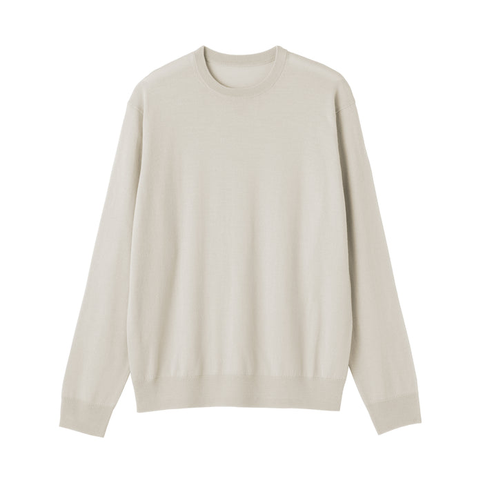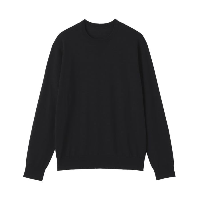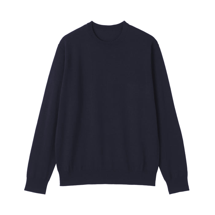 This men's crew neck sweater is soft and cozy, made from fine, durable high-gauge wool thread that is smooth on the skin. The thin wool material ensures warmth for versatile styling on its own or as a layering piece on chilly days. It also features a shrink-proof finish, making it easily washable at home.