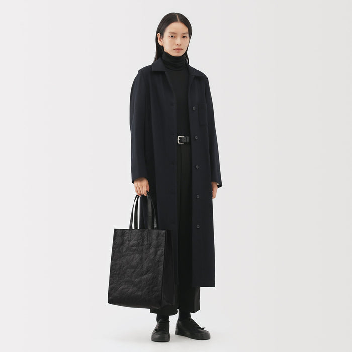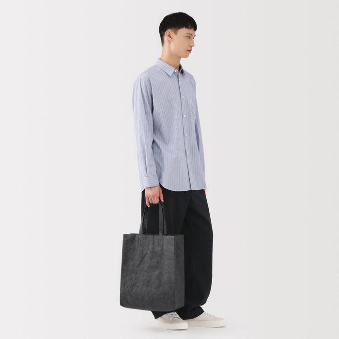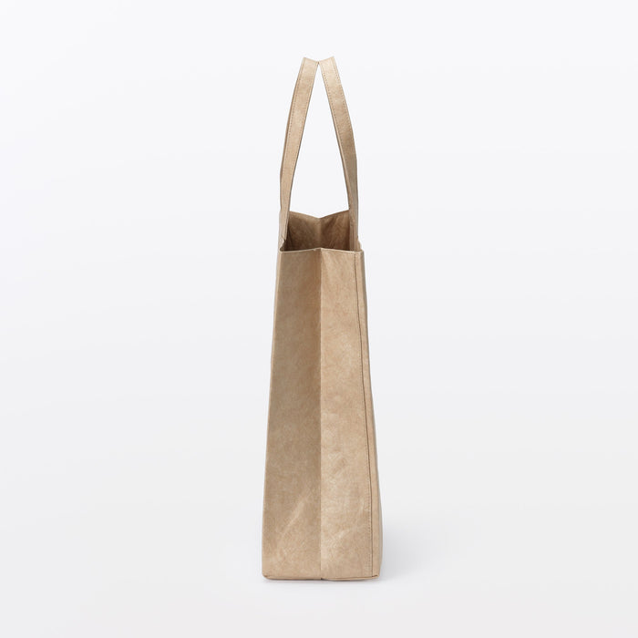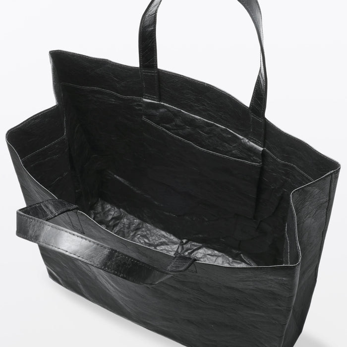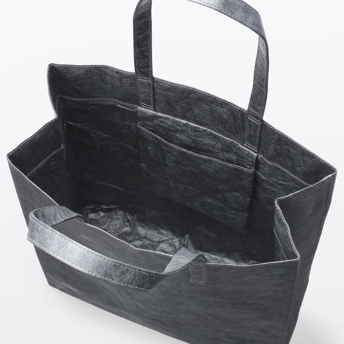 This tote bag is made using a high density non-woven polyethylene material with a texture similar to Japanese Washi paper, which develops a moderate amount of wrinkles with repeated use for a charming appearance. There is an extra inner pocket that is convenient to organize small important items for quick access.
