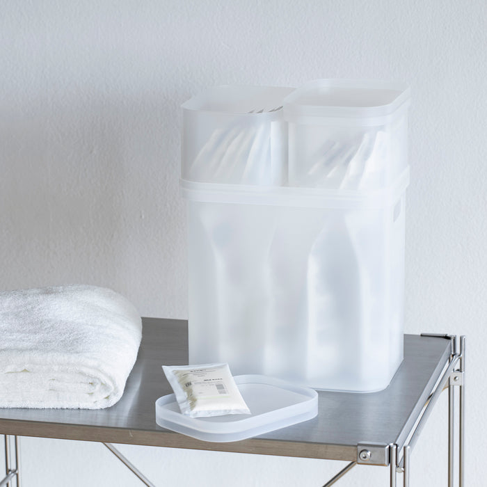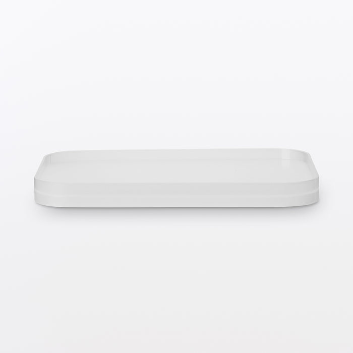 A sturdy lid that fits a variety of our polypropylene makeup boxes. It is made from partially recycled translucent polypropylene that makes it easy to preview the contents inside, while also being easy to clean. The lid is designed with a bevel to make it easy to stack in combination with our other polypropylene makeup boxes, or it can be used standalone as a tray.