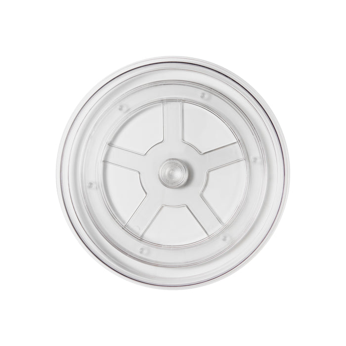This convenient round tray has a smooth turntable design that allows for quick and easy access to items. Made of a lightweight and transparent PET material that matches any space, it is perfect for storing skincare or organizing the kitchen and fridge.