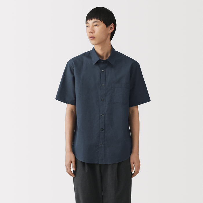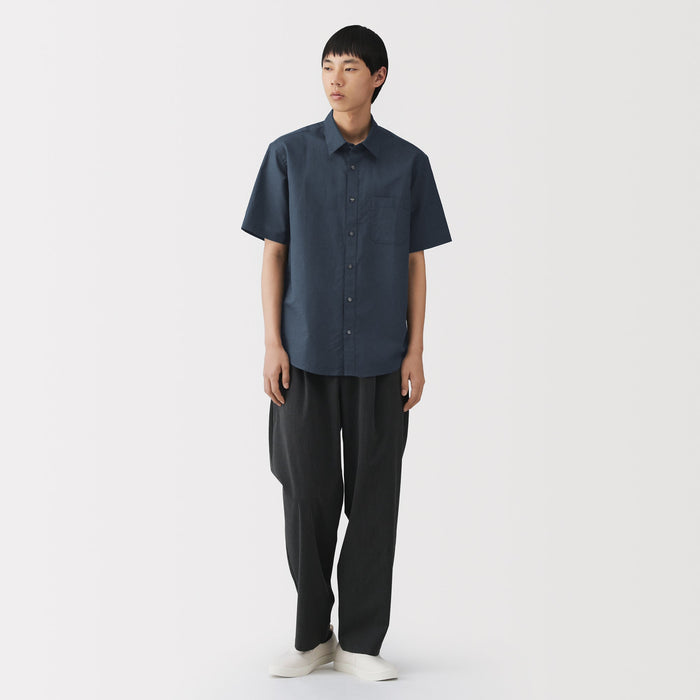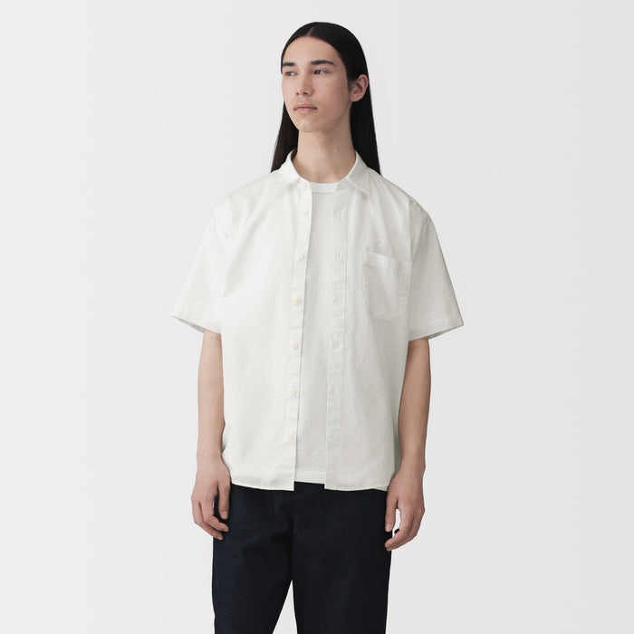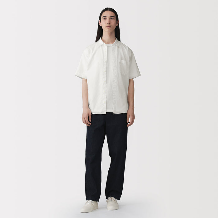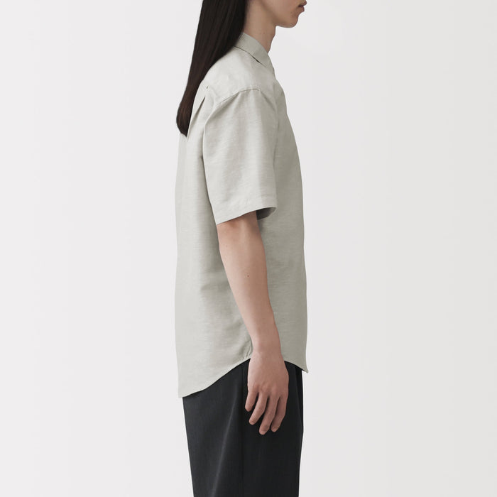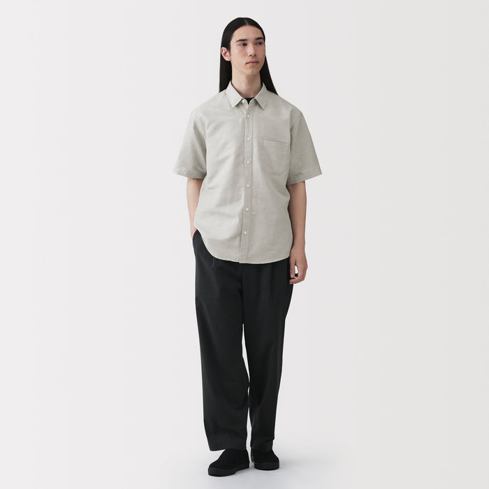 A breezy men's short-sleeved shirt made with twilled hemp and organic cotton for a soft, plump material that's comfortable and breathable.