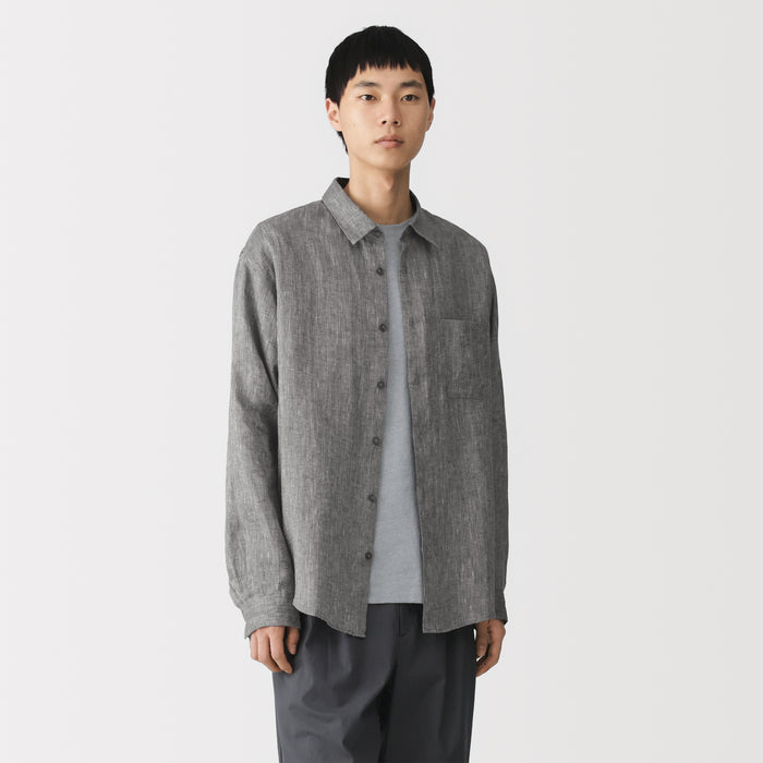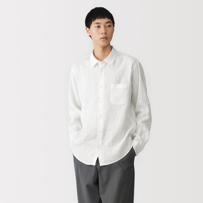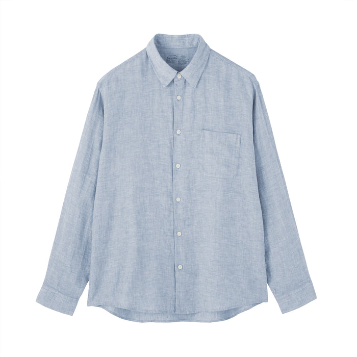 A classic men's collared long sleeve button-up shirt made with cool, pre-washed French linen that gets softer with each wear. Breathable and lightweight, you can wear it on its own, or layered over a t-shirt.