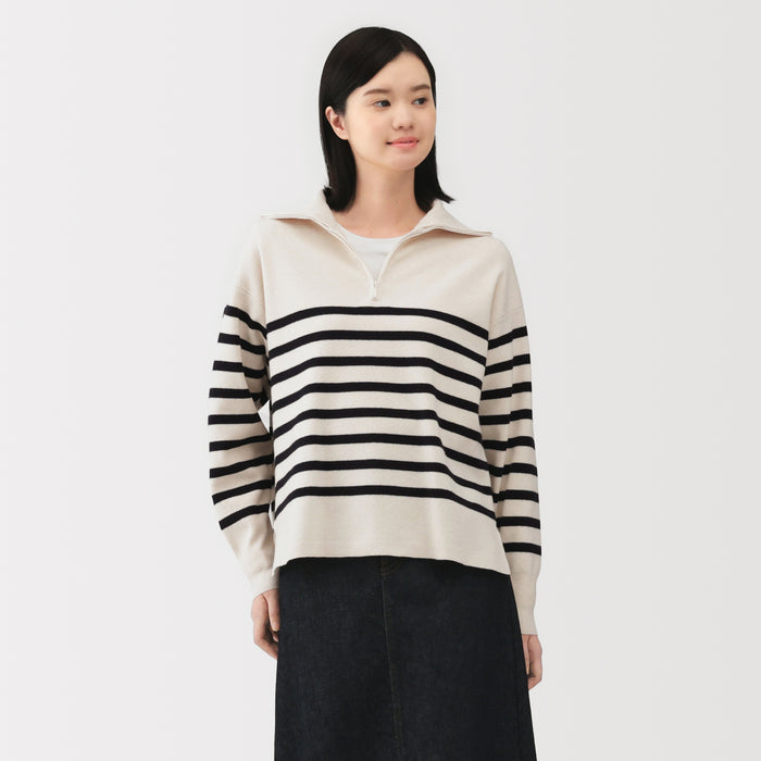 This women's half-zip sweater is knitted with shape-keeping stretchy yarn that is smooth to touch. Machine washable for easy and convenient care at home. The half-zip neck is versatile to wear, letting you show off your inner layer and keep cool when it's open, or zip it up and wear it as a turtleneck sweater to stay warm.