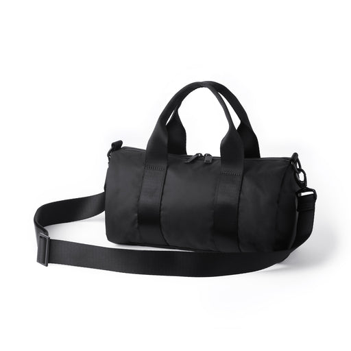 A mini Boston Bag with an adjustable and removable shoulder strap, made from a firm, lustrous recycled nylon material. The outer shell is water-rep...