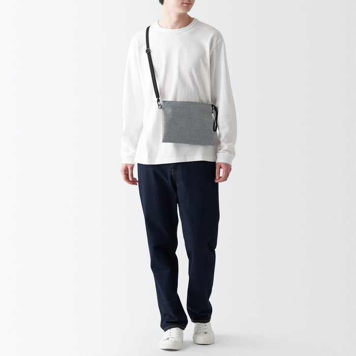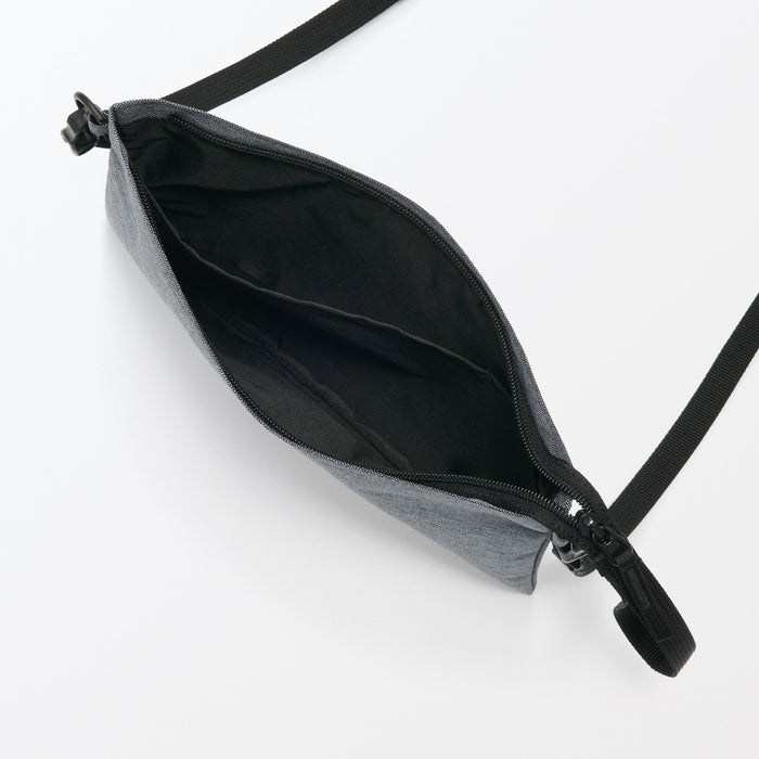This compact, shoulder-slung pouch is the perfect size to hold all of your daily necessities for quick outings. Made from recycled polyester, it has a water repellent coating to protect your belongings. There is an interior divider to help keep its contents organized and easy to find.