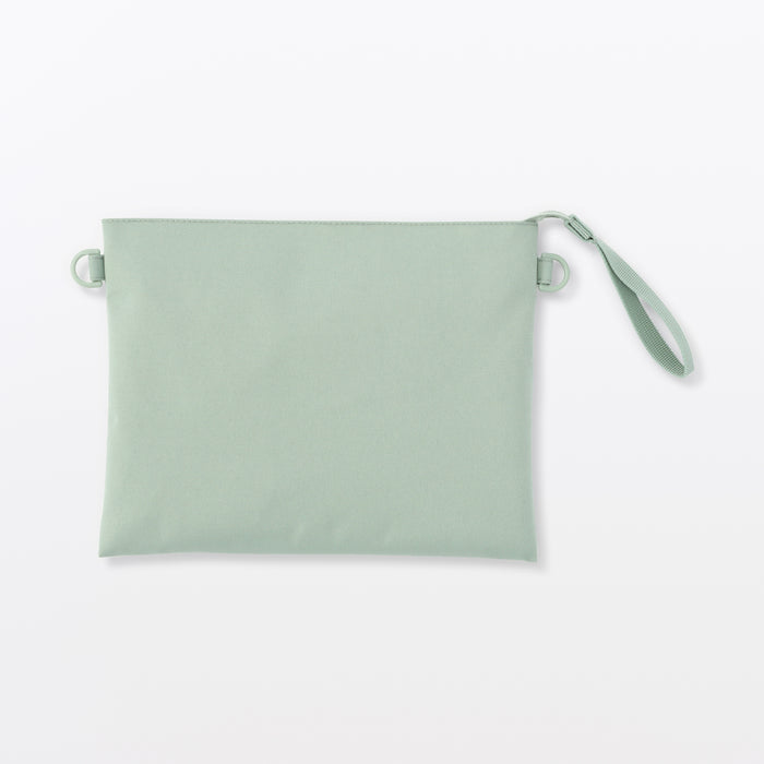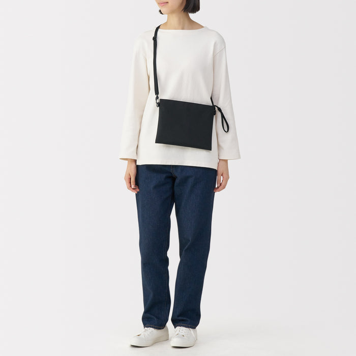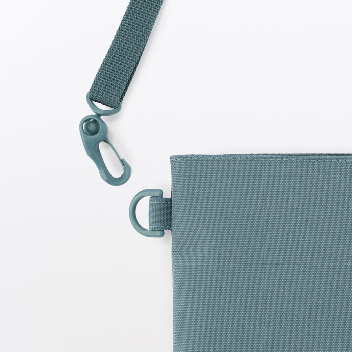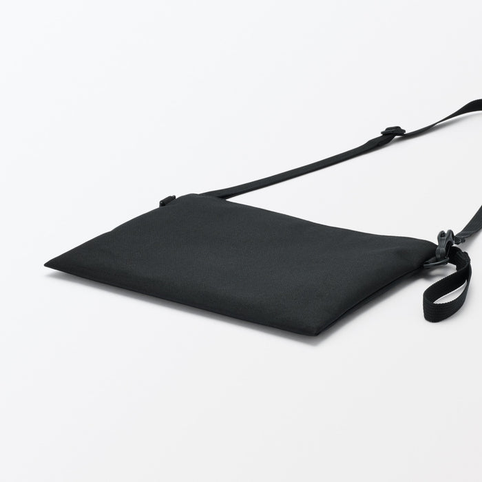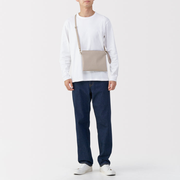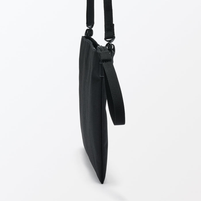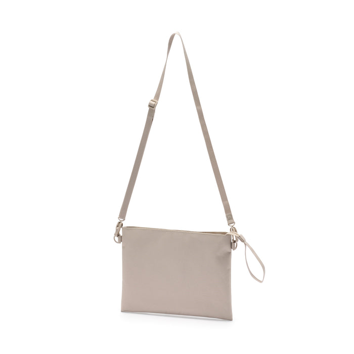This compact, shoulder-slung pouch is the perfect size to hold all of your daily necessities for quick outings. Made from recycled polyester, it has a water repellent coating to protect your belongings. There is an interior divider to help keep its contents organized and easy to find.