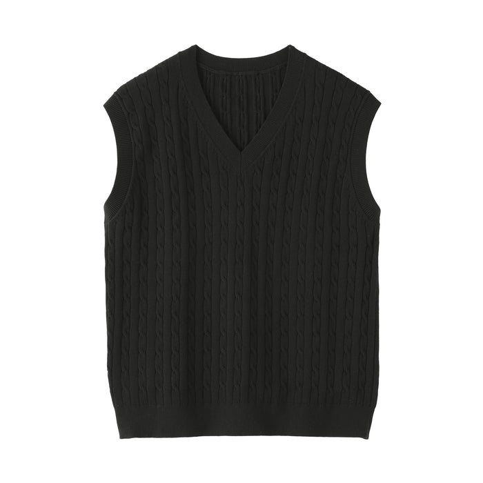 This sweater vest features a cable knit pattern and a relaxed silhouette that provides the perfect amount of room for comfort. The versatile design is easy to layer over a long sleeve t-shirt or a turtleneck, with just the right thickness to keep its structure. Made with a stretchy cotton blend yarn that is soft and smooth. Washable and easy to care for at home for convenience.Ā