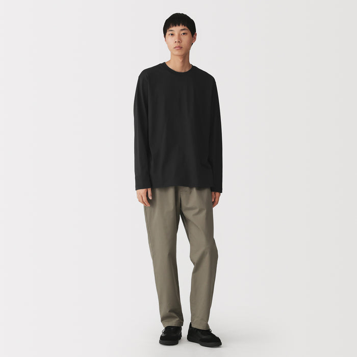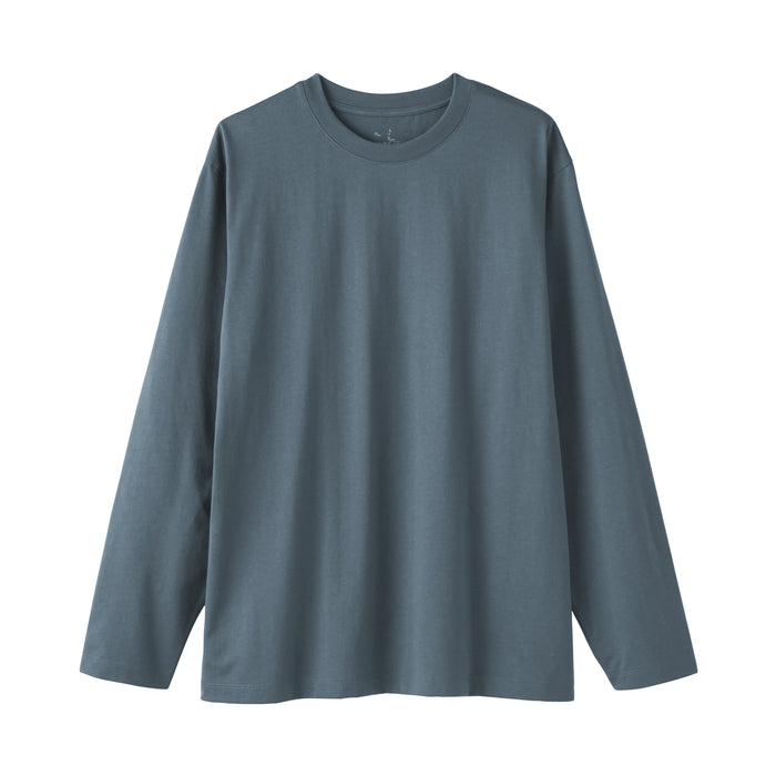 A classic men's long sleeve t-shirt with a boxy silhouette with just the right amount of room. Perfect for wearing all day long, either on its own or layered for extra warmth. Made with a blend of cotton and polyester that is lightweight and soft on the skin.