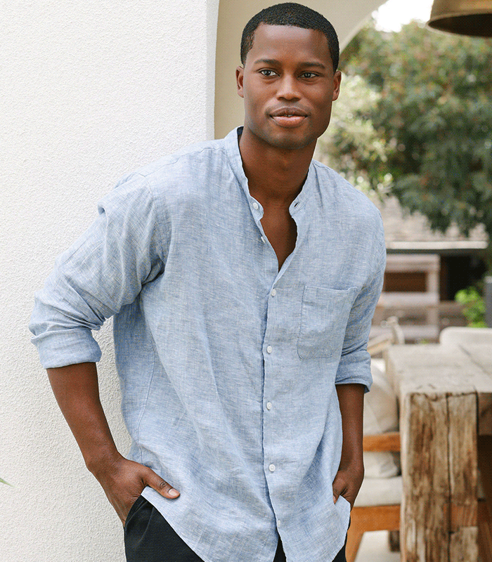 A classic men's stand collar shirt made with durable pre-washed linen that gets softer with each wear. Breathable and lightweight, you can wear it ...
