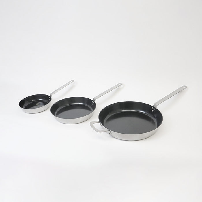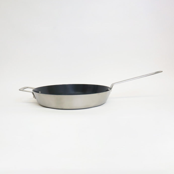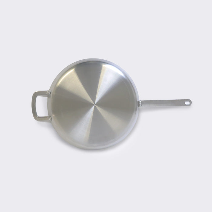 This stainless steel frying pan features a durable sol-gel ceramic non-stick coating that reduces the need for oil or fat during cooking. The advanced ceramic surface provides reliable non-stick performance while maintaining heat distribution for even cooking results. Perfect for everyday meal preparation.