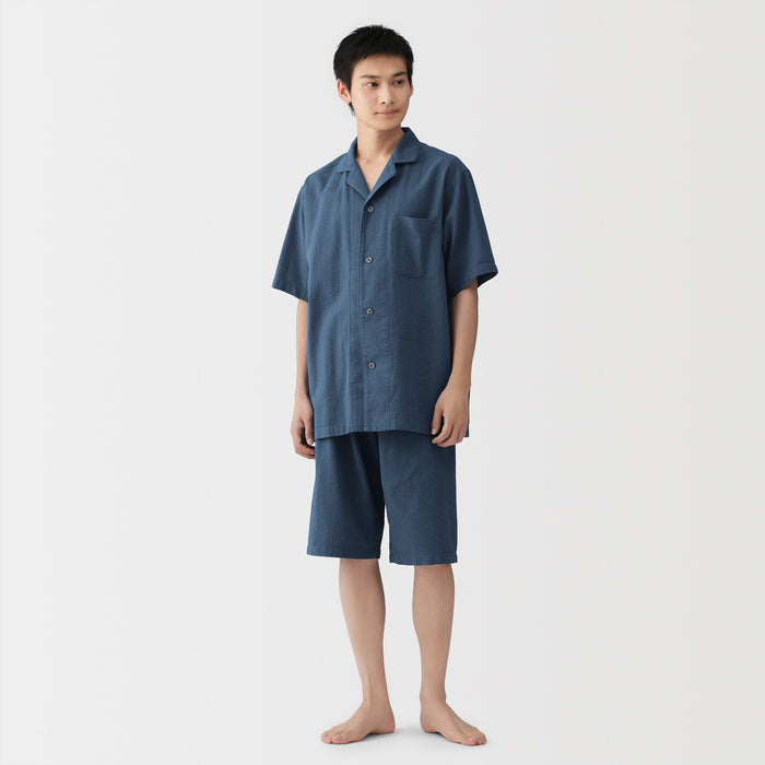 Experience comfort and luxury with these men's short sleeve seersucker pajamas. Made with organic cotton, the seersucker material is both soft and breathable, keeping you cool in the night. Our design eliminates side seams and tags around the neckline, so you can enjoy a comfortable night's sleep without any irritation. The fully elastic waistband has an opening, allowing you to adjust it by pulling out the elastic and sewing it in place.