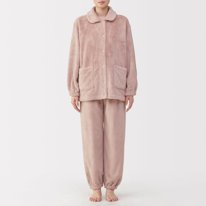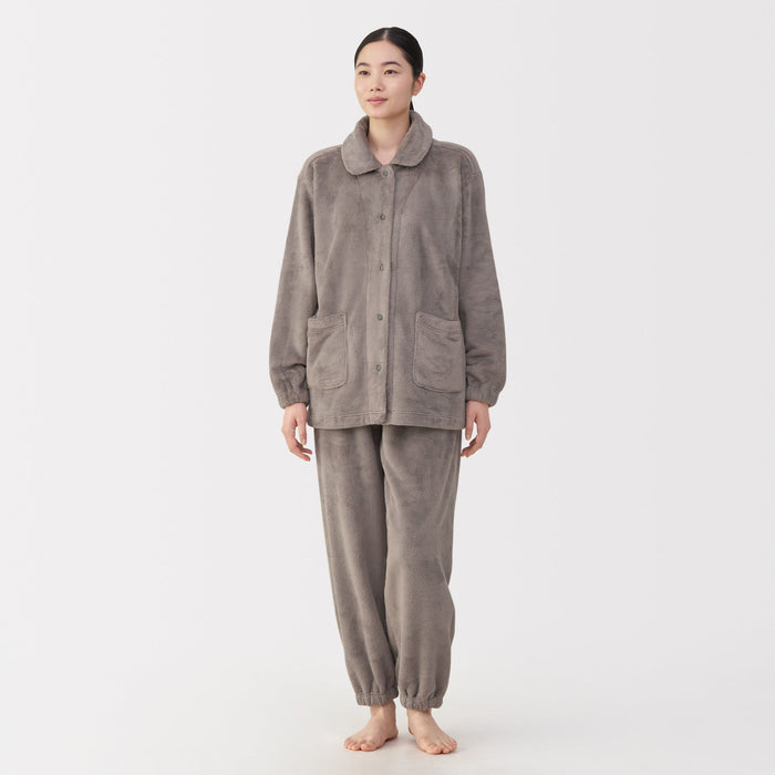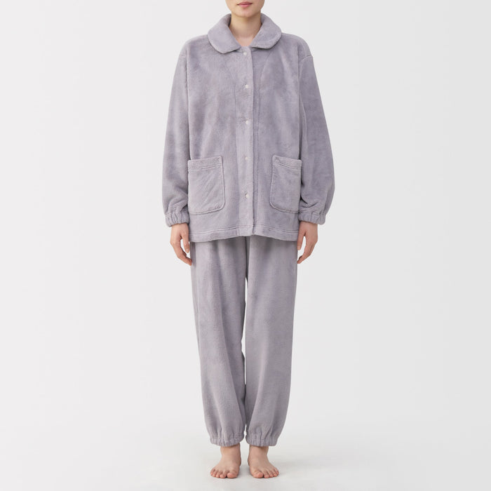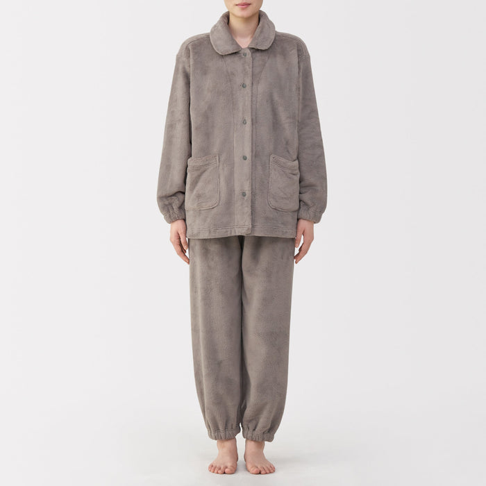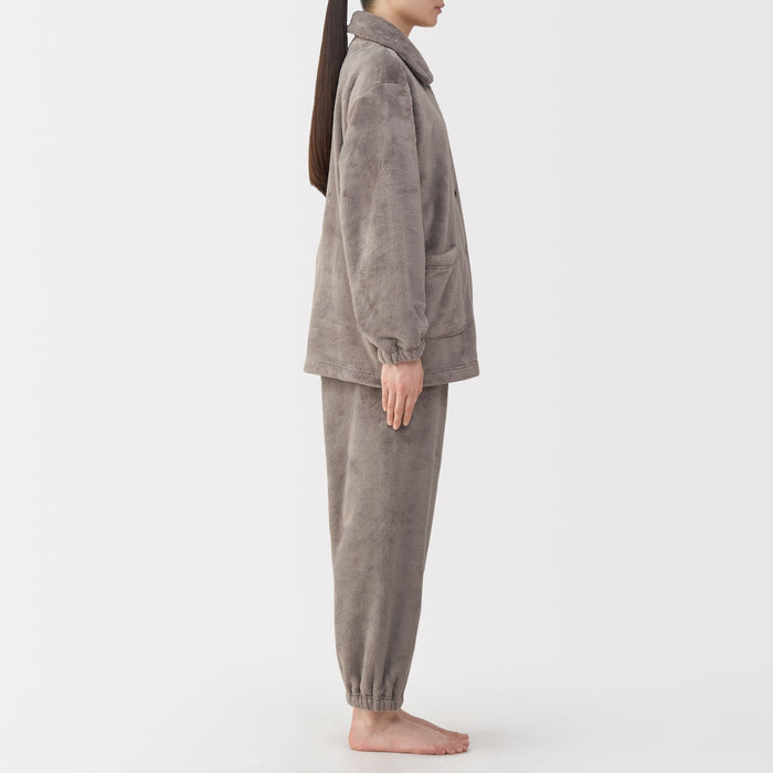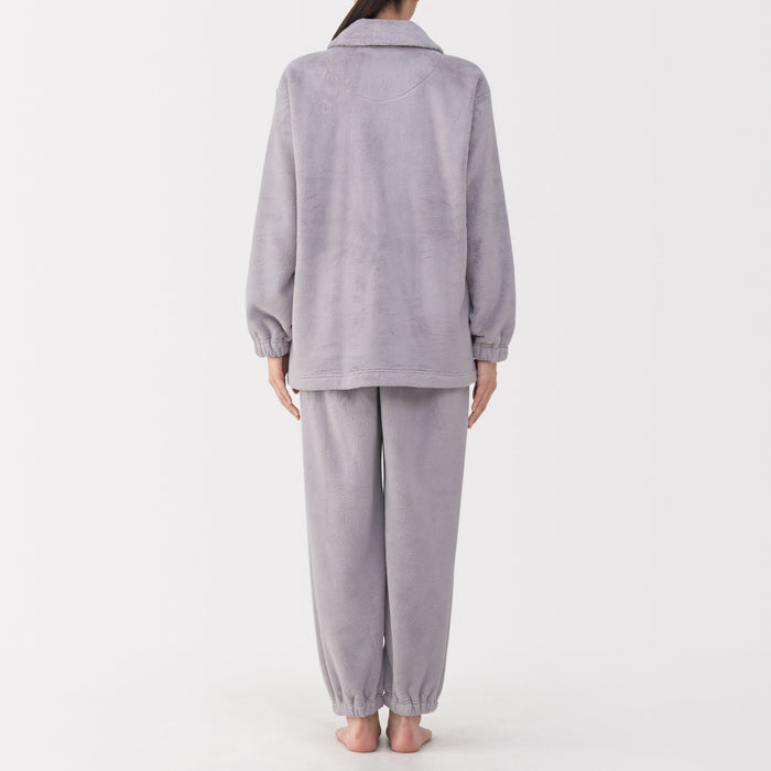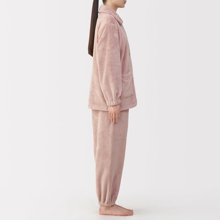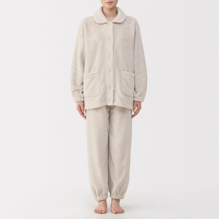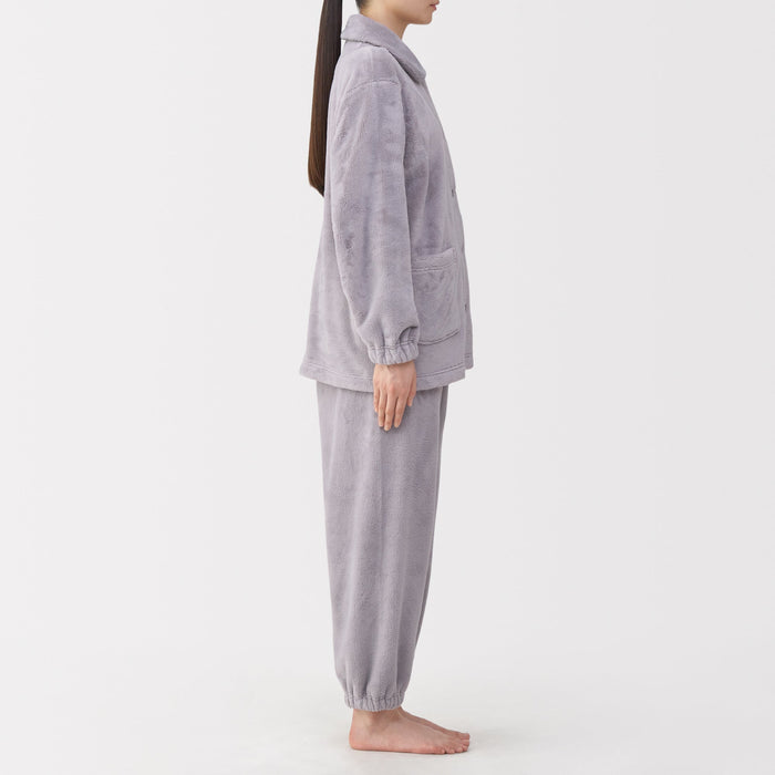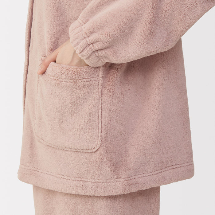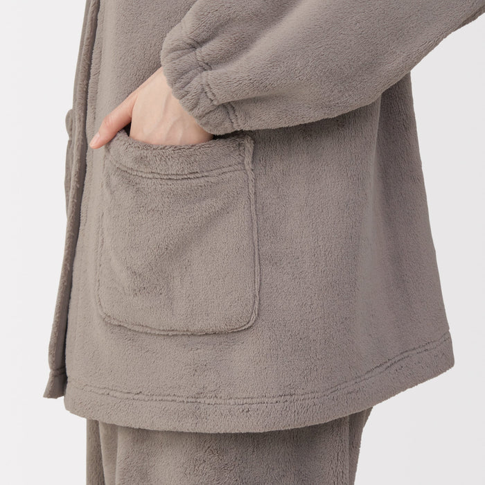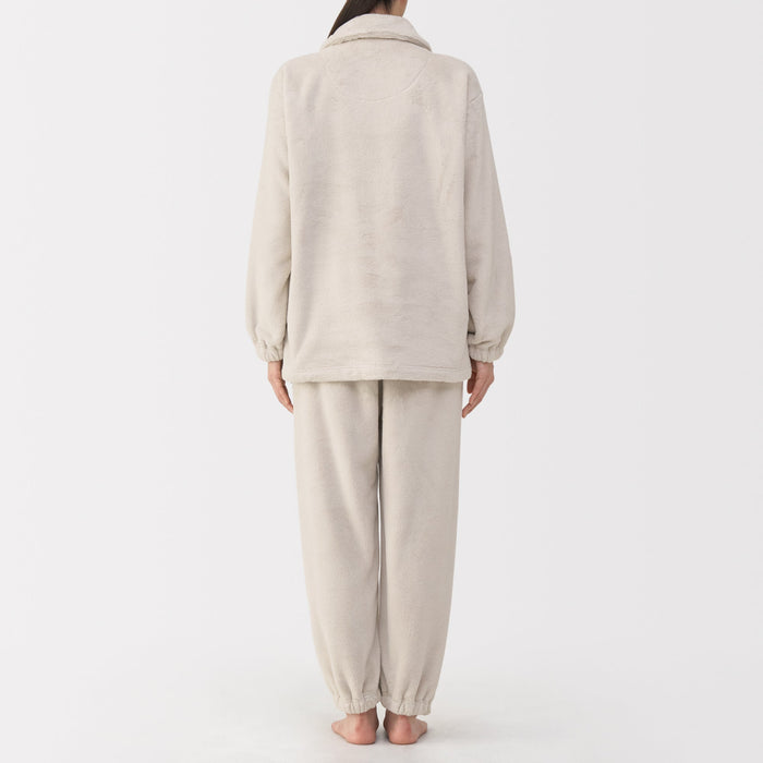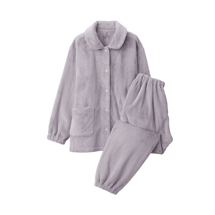 This plush pajama set is perfect for lounging during winter, made with regenerated cellulose using recycled natural fibres for a smooth and soft feeling on the skin. Using anti-static yarn, it prevents static electricity when putting on and taking off, making it comfortable even for dry winter skin.