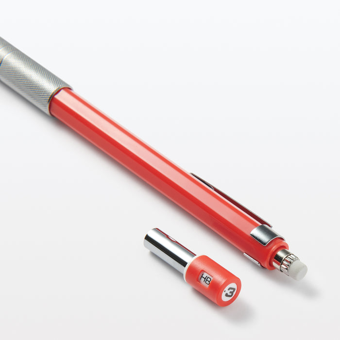 This mechanical lead pencil features a weighted design with a low centre of gravity to provide a stable writing experience. The knurled grip prevents hand slippage so the extra weight does not move in your hand. A handy window display reminds you what lead grade you are using.