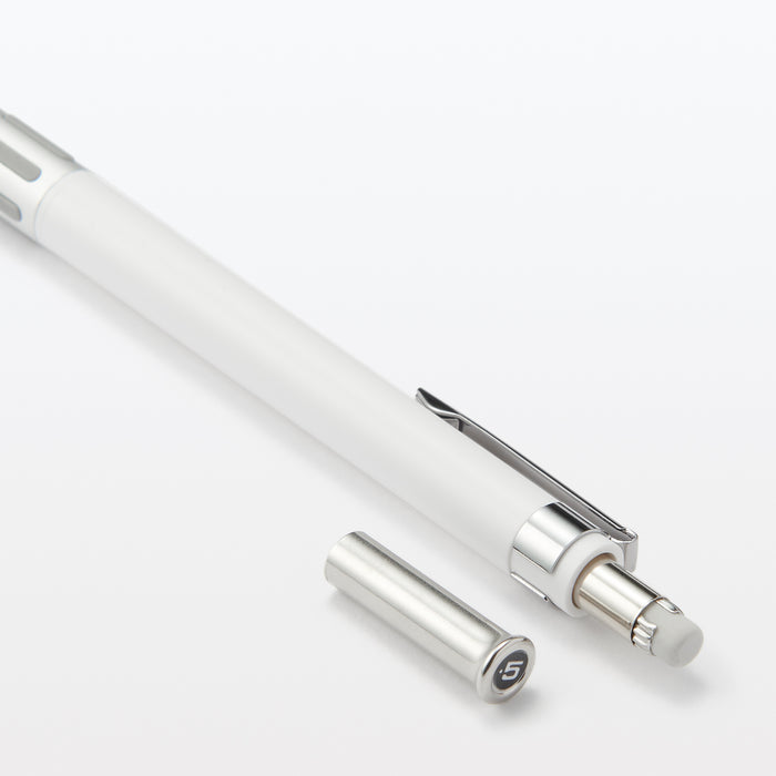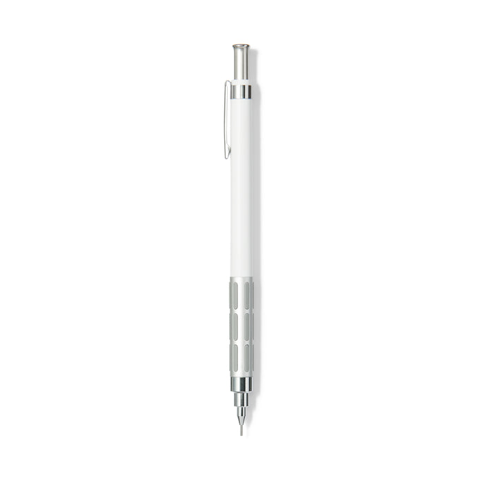 This mechanical lead pencil is designed to be lighter than our previous products, making it more comfortable to use for long periods of time. Its low centre of gravity provides a stable writing experience, along with a non-slip metal grip with rubber that is comfortable to hold.