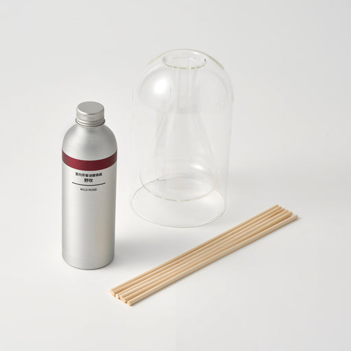 A fragrance diffuser made of clear glass. Add aromatic oils and reeds, and the remaining amount of essential oil is easily visible. After use, wash...