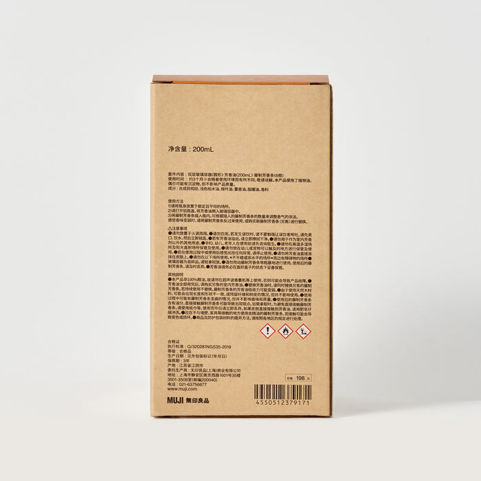 There may be cases where rattan sticks are distorted during use, but this does not affect the fragrance or quality. The rattan sticks contain oil after use. Direct contact with the rattan sticks may cause spots to appear. To avoid direct contact with the rattan sticks, use a paper towel or the like when picking them up, and dispose of them immediately after use. If the oil comes into direct contact with your skin, rinse carefully with soap. Use rattan sticks containing essential oils in places where they do not come into contact with walls, furniture, etc. Contact may cause discoloration or damage.