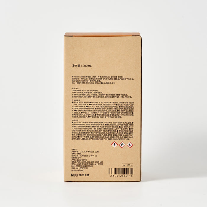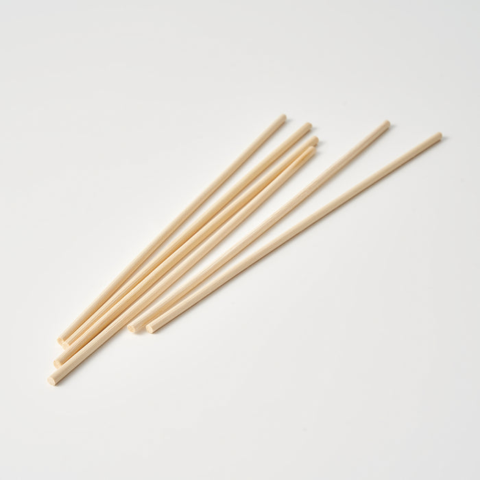 There may be cases where rattan sticks are distorted during use, but this does not affect the fragrance or quality. The rattan sticks contain oil after use. Direct contact with the rattan sticks may cause spots to appear. To avoid direct contact with the rattan sticks, use a paper towel or the like when picking them up, and dispose of them immediately after use. If the oil comes into direct contact with your skin, rinse carefully with soap. Use rattan sticks containing essential oils in places where they do not come into contact with walls, furniture, etc. Contact may cause discoloration or damage.