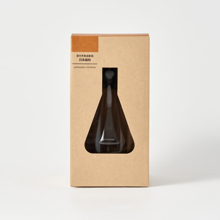 A fragrance diffuser made of clear glass. Add aromatic oils and reeds, and the remaining amount of essential oil is easily visible. After use, wash and replace with different scented essential oils for reuse.