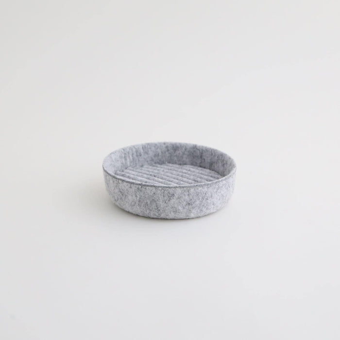 Introducing the Saza Series, an original storage item from IDÉE. These boxes and trays feature a design accent of ripple-like felt texture. Made from recycled felt derived from plastic bottles, they are lightweight, stable, and maintain their shape well. Their moderate cushioning and durability make them perfect for storing small items.