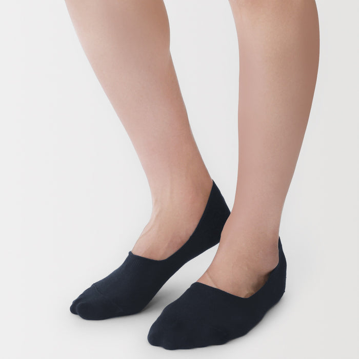 No-show sneaker socks with silicone heel grips that prevent them from sliding down. The seam line on the toes are stitched flat to prevent discomfort, and the reinforced threading at the toes and heel has a sweat deodorizing effect.
