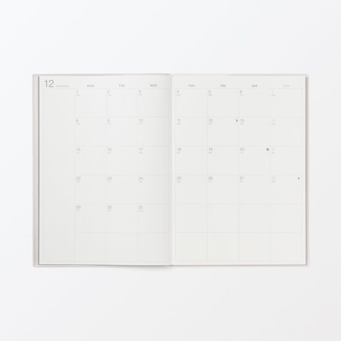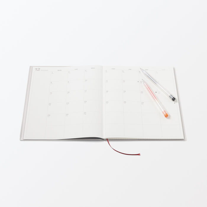 This monthly planner includes 2-page Monday-start monthly spreads with extra grid pages for notetaking, habit tracking, mini daily journal entries, or doodling. The inner cover includes pockets to store important notes and documents, and a handy bookmark string helps you easily find your place.