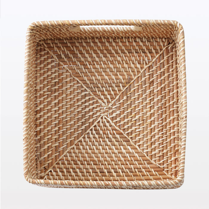 Each Rattan Basket is individually handwoven in Vietnamese tradition with uncoated rattan, a durable, light, and smooth material making it a natural perfect storage solution. These boxes are designed to be stackable so you can store them on top of each other, and easily carry and move them around thanks to its built in handles.