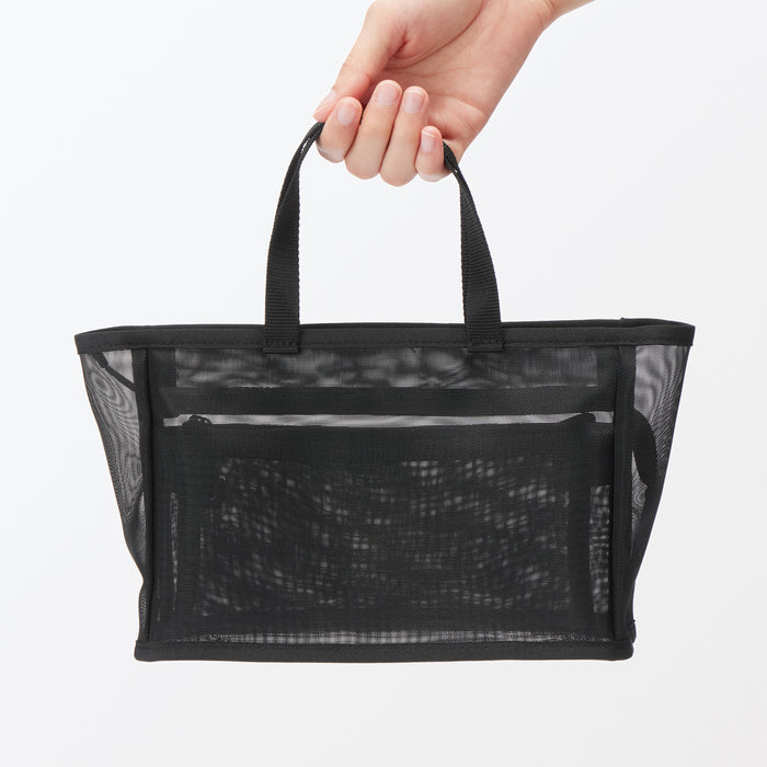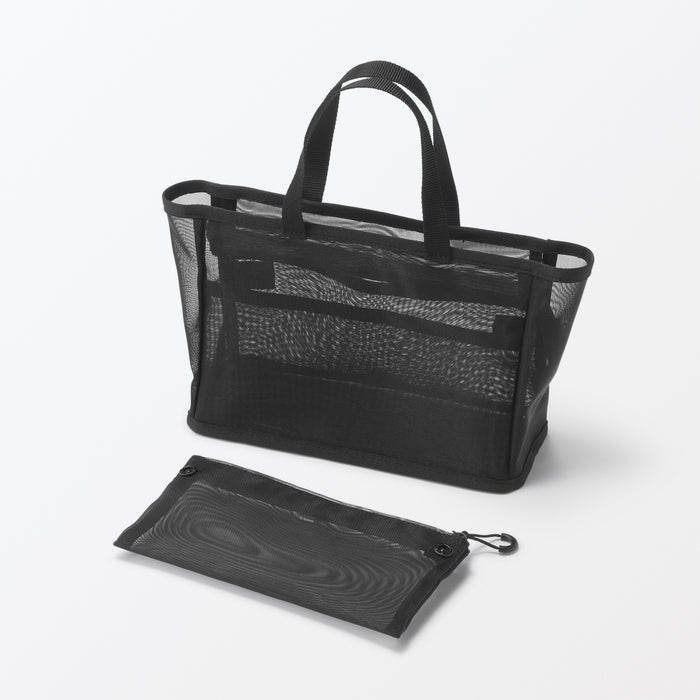 Keep your essentials organized with this lightweight nylon mesh pouch, complete with an internal divider to separate and organize your toiletries while traveling or at home.