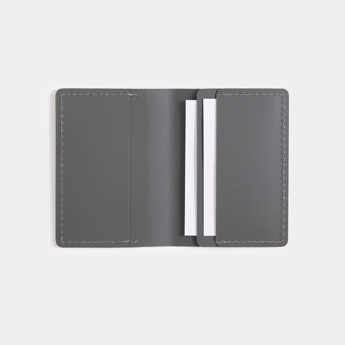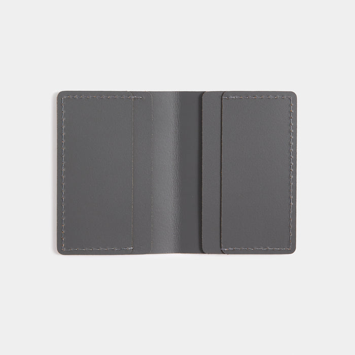 This graphite travel card holder offers a sleek, structured design for the modern traveler. Made from recycled leather, it features multiple compartments to keep your receipts, tickets, and currency bills neatly stored. Its slim, compact shape ensures it fits easily into pockets or small bags without adding bulk. Durable and eco-conscious, this holder is designed to withstand daily use while minimizing waste.