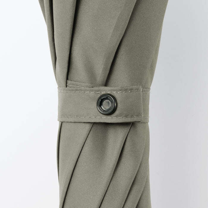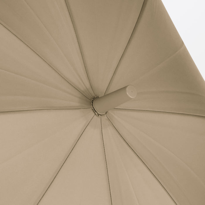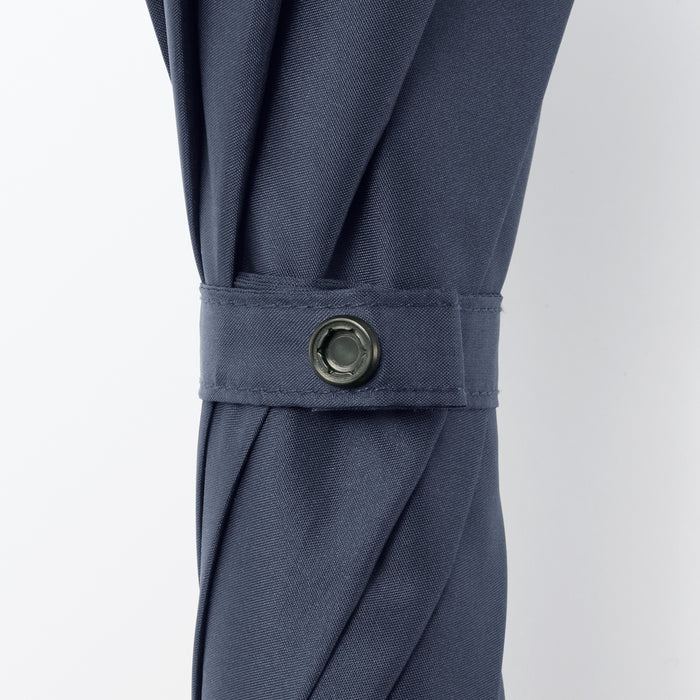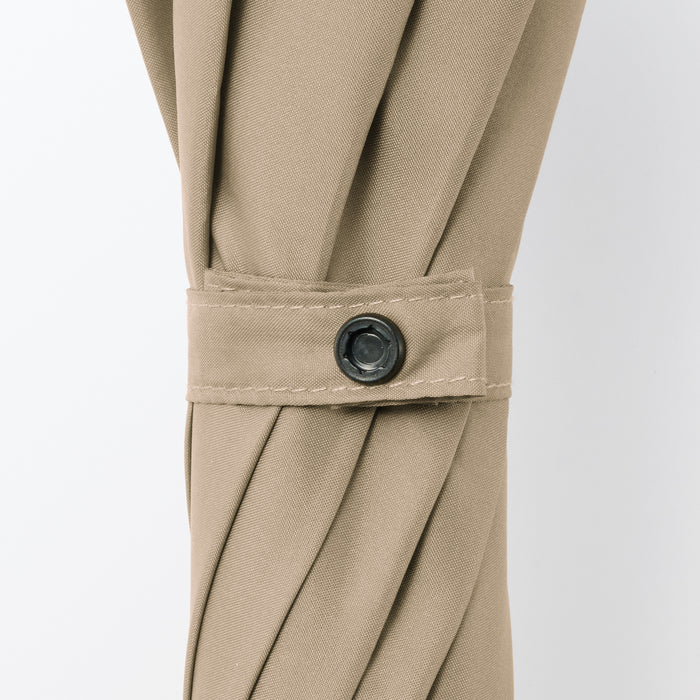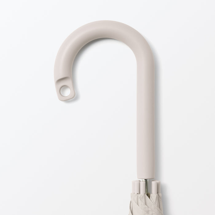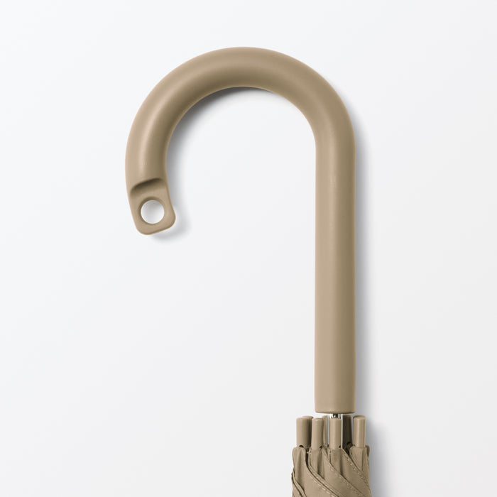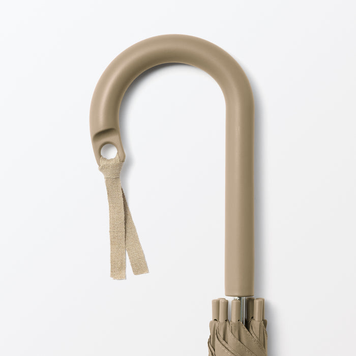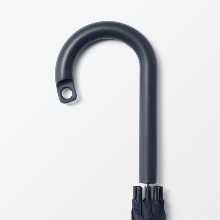 A sturdy, full-size 8-rib umbrella that can be used for both shade against the sun or coverage from the rain. You can personalize it with a ribbon or keychain and attach it to the handle hole for easy identification. It has a double-sided button so it can be fastened closed from either side quickly and conveniently.