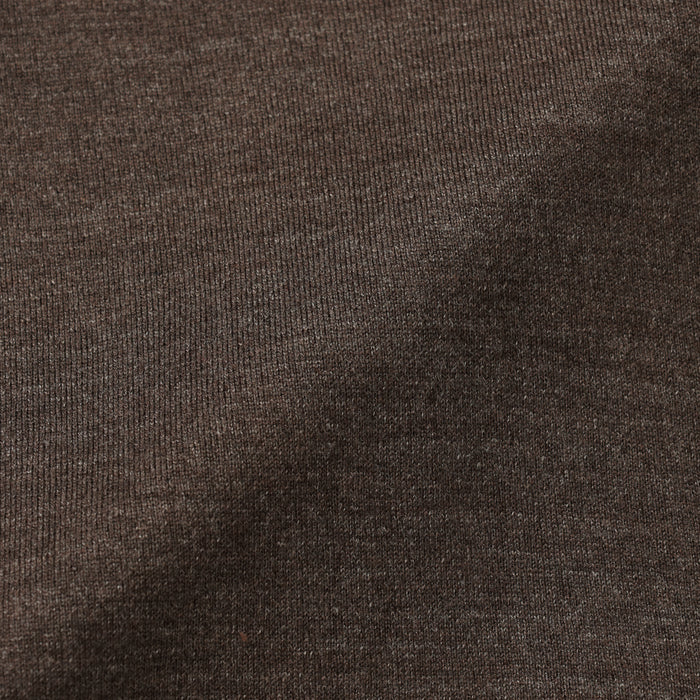 The fabric's softness is achieved by using a traditional loopwheel machine, which knits very slowly from bottom to top to remove unnecessary tension on the yarn. This slow, careful process ensures a high-quality material with a fluffy, airy texture that is only possible with traditional knitting methods. Because of this process, the material may feature natural irregularities like slightly uneven texture or stitching, adding character to each piece.