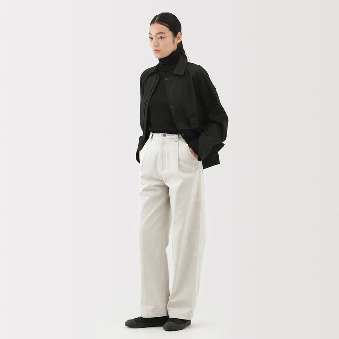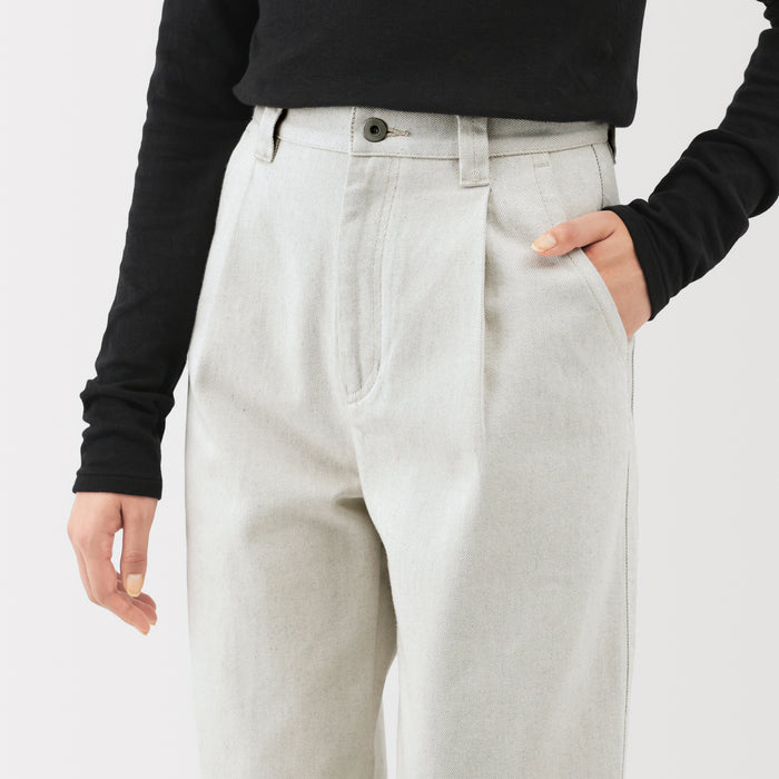 Women's pants spun from partly recycled organic cotton and production scrap mix. Inseam 30.7" (78 cm).
