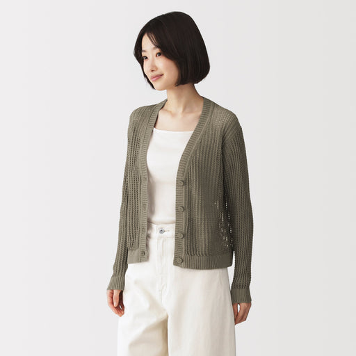 Linen Blend Mesh V-Neck Cardigan